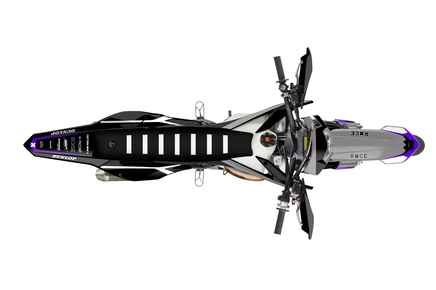 «Cyber Pirate» — готовый комплект графики серии Flow для KTM Supermoto Graphic Kit KTM EXC 150 2017. В комплекте: графика на бак и боковые облицовки, крылья (переднее и заднее), передний щиток, номерные таблички, защита вилки. Материал: ПВХ-винил 80 мкр с холодной ламинацией 300 мкр, общая толщина 380 мкр; покрытие глянцевое или матовое на выбор. Устойчив к UV-излучению, воде, бензину и мойке высокого давления. Клей акриловый на сольвентной основе — постоянный, для гибких пластиков. На простых поверхностях монтируется без нагрева; для сложных изгибов рекомендуем фен. Этот пресет можно заказать как есть или взять за основу в конструкторе: поменять цвета, добавить стартовый номер и свой бренд. Производство — 3–5 рабочих дней, доставка по России СДЭКом или Почтой, по СНГ — курьерскими службами.