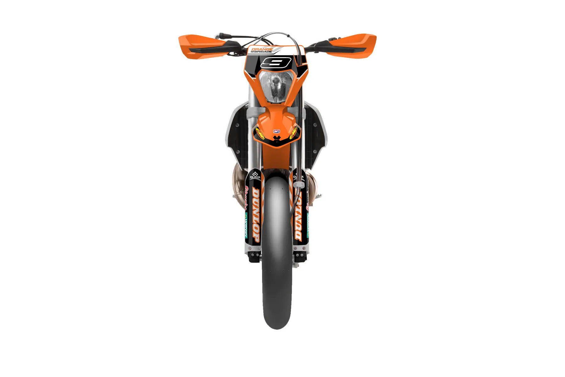 «Eleven» — готовый комплект графики серии Maverick для KTM Supermoto Graphic Kit KTM EXC 150 2017. В комплекте: графика на бак и боковые облицовки, крылья (переднее и заднее), передний щиток, номерные таблички, защита вилки. Материал: ПВХ-винил 80 мкр с холодной ламинацией 300 мкр, общая толщина 380 мкр; покрытие глянцевое или матовое на выбор. Устойчив к UV-излучению, воде, бензину и мойке высокого давления. Клей акриловый на сольвентной основе — постоянный, для гибких пластиков. На простых поверхностях монтируется без нагрева; для сложных изгибов рекомендуем фен. Этот пресет можно заказать как есть или взять за основу в конструкторе: поменять цвета, добавить стартовый номер и свой бренд. Производство — 3–5 рабочих дней, доставка по России СДЭКом или Почтой, по СНГ — курьерскими службами.