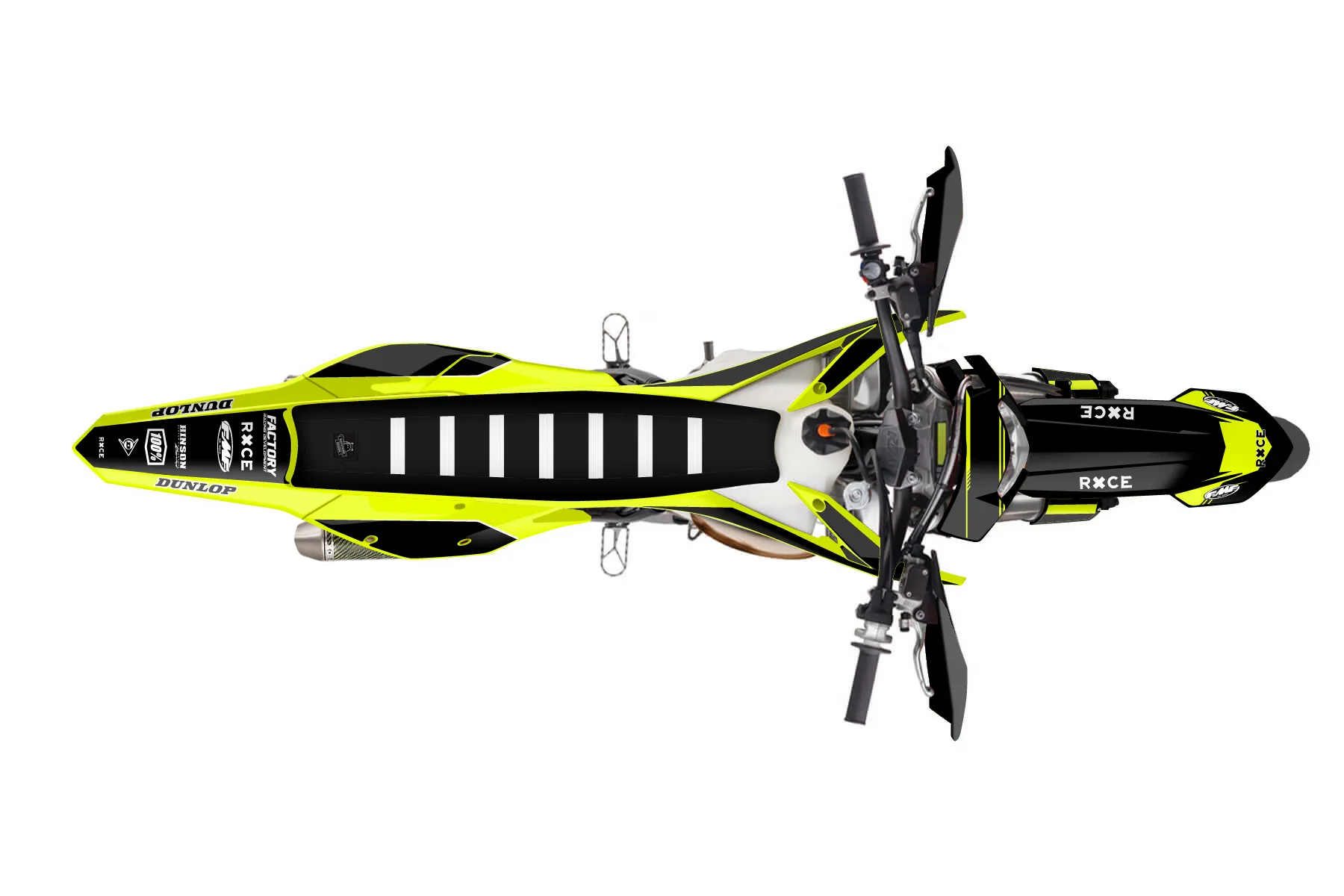 «Style Neon» — готовый комплект графики серии Untucked для KTM Supermoto Graphic Kit KTM EXC 250 2017. В комплекте: графика на бак и боковые облицовки, крылья (переднее и заднее), передний щиток, номерные таблички, защита вилки. Материал: ПВХ-винил 80 мкр с холодной ламинацией 300 мкр, общая толщина 380 мкр; покрытие глянцевое или матовое на выбор. Устойчив к UV-излучению, воде, бензину и мойке высокого давления. Клей акриловый на сольвентной основе — постоянный, для гибких пластиков. На простых поверхностях монтируется без нагрева; для сложных изгибов рекомендуем фен. Этот пресет можно заказать как есть или взять за основу в конструкторе: поменять цвета, добавить стартовый номер и свой бренд. Производство — 3–5 рабочих дней, доставка по России СДЭКом или Почтой, по СНГ — курьерскими службами.