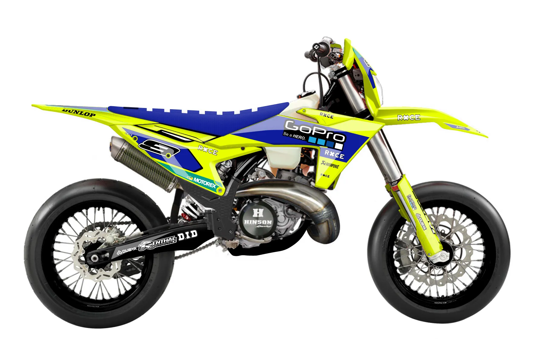 «Brilliant Neon» — готовый комплект графики серии Flow для KTM Supermoto Graphic Kit KTM EXC 300 2024. В комплекте: графика на бак и боковые облицовки, крылья (переднее и заднее), передний щиток, номерные таблички, защита вилки. Материал: ПВХ-винил 80 мкр с холодной ламинацией 300 мкр, общая толщина 380 мкр; покрытие глянцевое или матовое на выбор. Устойчив к UV-излучению, воде, бензину и мойке высокого давления. Клей акриловый на сольвентной основе — постоянный, для гибких пластиков. На простых поверхностях монтируется без нагрева; для сложных изгибов рекомендуем фен. Этот пресет можно заказать как есть или взять за основу в конструкторе: поменять цвета, добавить стартовый номер и свой бренд. Производство — 3–5 рабочих дней, доставка по России СДЭКом или Почтой, по СНГ — курьерскими службами.
