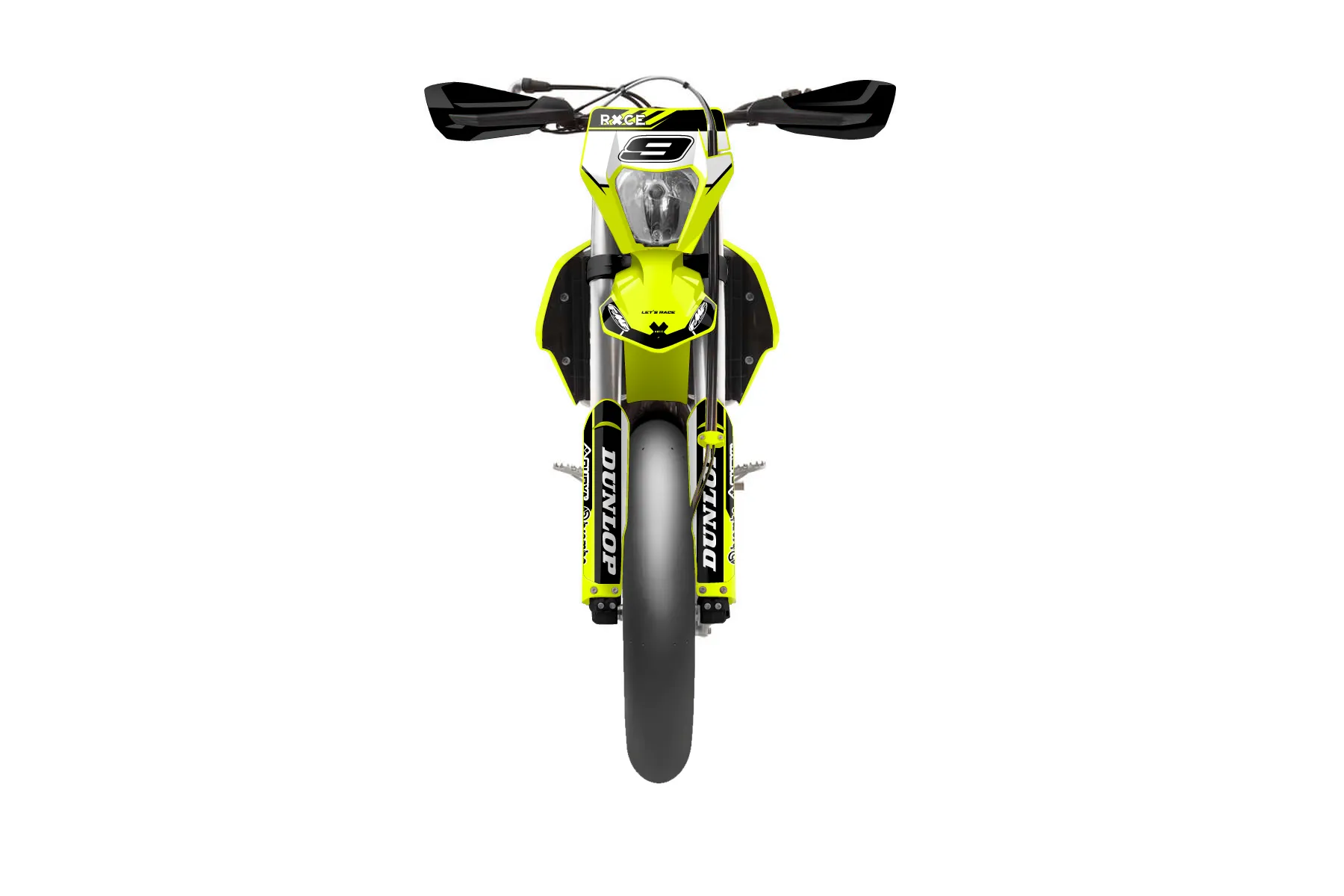 «Bright Neon» — готовый комплект графики серии Maverick для KTM Supermoto Graphic Kit KTM EXC-F 250 2017. В комплекте: графика на бак и боковые облицовки, крылья (переднее и заднее), передний щиток, номерные таблички, защита вилки. Материал: ПВХ-винил 80 мкр с холодной ламинацией 300 мкр, общая толщина 380 мкр; покрытие глянцевое или матовое на выбор. Устойчив к UV-излучению, воде, бензину и мойке высокого давления. Клей акриловый на сольвентной основе — постоянный, для гибких пластиков. На простых поверхностях монтируется без нагрева; для сложных изгибов рекомендуем фен. Этот пресет можно заказать как есть или взять за основу в конструкторе: поменять цвета, добавить стартовый номер и свой бренд. Производство — 3–5 рабочих дней, доставка по России СДЭКом или Почтой, по СНГ — курьерскими службами.