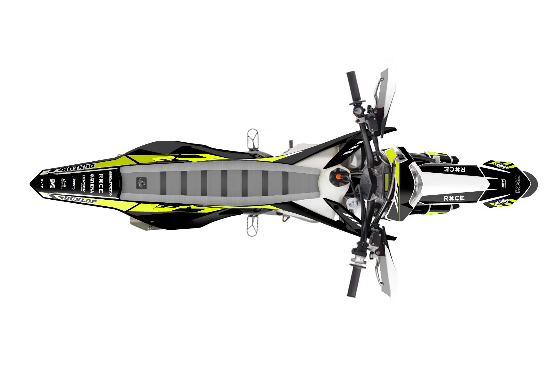 «Daze Fluo» — готовый комплект графики серии Maverick для KTM Supermoto Graphic Kit KTM EXC-F 350 2017. В комплекте: графика на бак и боковые облицовки, крылья (переднее и заднее), передний щиток, номерные таблички, защита вилки. Материал: ПВХ-винил 80 мкр с холодной ламинацией 300 мкр, общая толщина 380 мкр; покрытие глянцевое или матовое на выбор. Устойчив к UV-излучению, воде, бензину и мойке высокого давления. Клей акриловый на сольвентной основе — постоянный, для гибких пластиков. На простых поверхностях монтируется без нагрева; для сложных изгибов рекомендуем фен. Этот пресет можно заказать как есть или взять за основу в конструкторе: поменять цвета, добавить стартовый номер и свой бренд. Производство — 3–5 рабочих дней, доставка по России СДЭКом или Почтой, по СНГ — курьерскими службами.