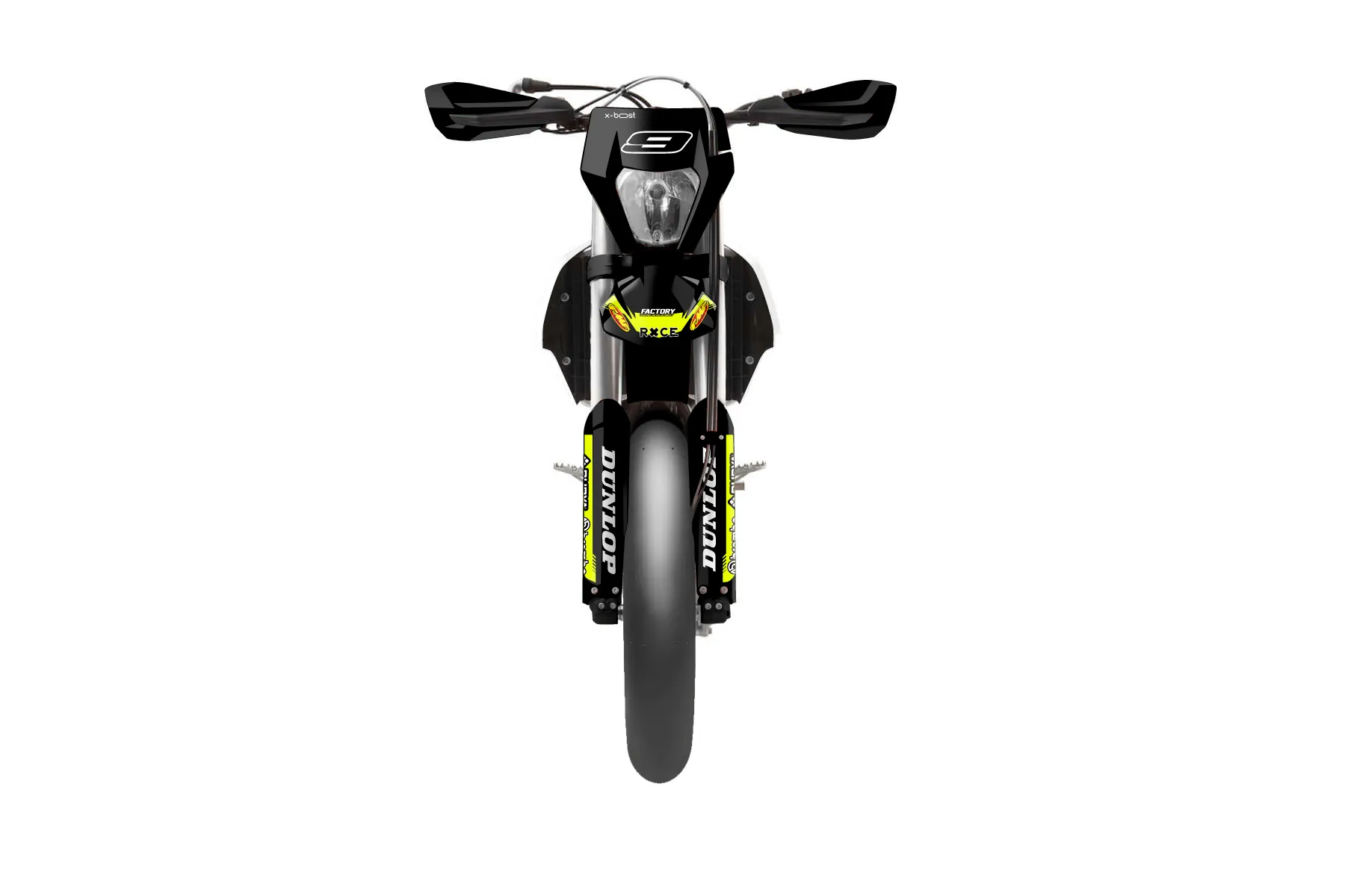 «Close» — готовый комплект графики серии Untucked для KTM Supermoto Graphic Kit KTM EXC-F 350 2017. В комплекте: графика на бак и боковые облицовки, крылья (переднее и заднее), передний щиток, номерные таблички, защита вилки. Материал: ПВХ-винил 80 мкр с холодной ламинацией 300 мкр, общая толщина 380 мкр; покрытие глянцевое или матовое на выбор. Устойчив к UV-излучению, воде, бензину и мойке высокого давления. Клей акриловый на сольвентной основе — постоянный, для гибких пластиков. На простых поверхностях монтируется без нагрева; для сложных изгибов рекомендуем фен. Этот пресет можно заказать как есть или взять за основу в конструкторе: поменять цвета, добавить стартовый номер и свой бренд. Производство — 3–5 рабочих дней, доставка по России СДЭКом или Почтой, по СНГ — курьерскими службами.