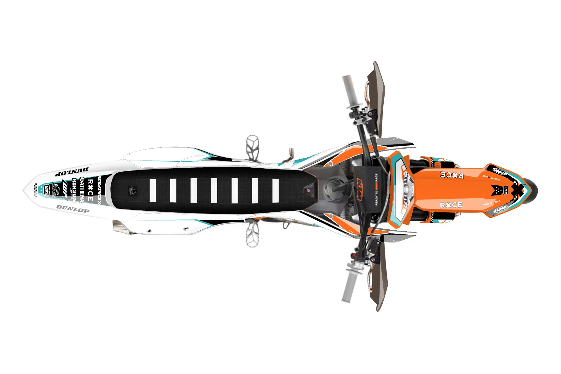 «Rutted» — готовый комплект графики серии Staple для KTM Supermoto Graphic Kit KTM EXC-F 350 2024. В комплекте: графика на бак и боковые облицовки, крылья (переднее и заднее), передний щиток, номерные таблички, защита вилки. Материал: ПВХ-винил 80 мкр с холодной ламинацией 300 мкр, общая толщина 380 мкр; покрытие глянцевое или матовое на выбор. Устойчив к UV-излучению, воде, бензину и мойке высокого давления. Клей акриловый на сольвентной основе — постоянный, для гибких пластиков. На простых поверхностях монтируется без нагрева; для сложных изгибов рекомендуем фен. Этот пресет можно заказать как есть или взять за основу в конструкторе: поменять цвета, добавить стартовый номер и свой бренд. Производство — 3–5 рабочих дней, доставка по России СДЭКом или Почтой, по СНГ — курьерскими службами.