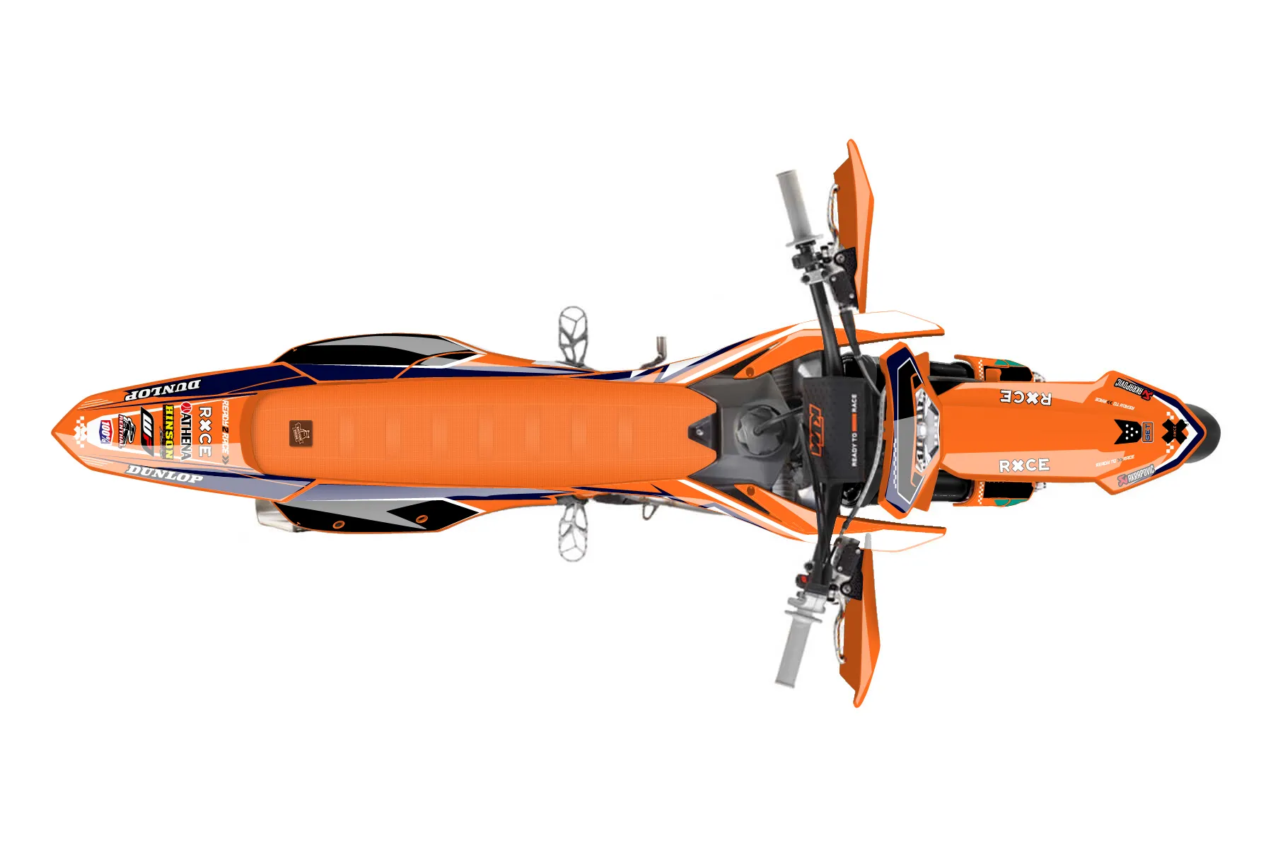 «Zipped» — готовый комплект графики серии Staple для KTM Supermoto Graphic Kit KTM EXC-F 350 2024. В комплекте: графика на бак и боковые облицовки, крылья (переднее и заднее), передний щиток, номерные таблички, защита вилки. Материал: ПВХ-винил 80 мкр с холодной ламинацией 300 мкр, общая толщина 380 мкр; покрытие глянцевое или матовое на выбор. Устойчив к UV-излучению, воде, бензину и мойке высокого давления. Клей акриловый на сольвентной основе — постоянный, для гибких пластиков. На простых поверхностях монтируется без нагрева; для сложных изгибов рекомендуем фен. Этот пресет можно заказать как есть или взять за основу в конструкторе: поменять цвета, добавить стартовый номер и свой бренд. Производство — 3–5 рабочих дней, доставка по России СДЭКом или Почтой, по СНГ — курьерскими службами.