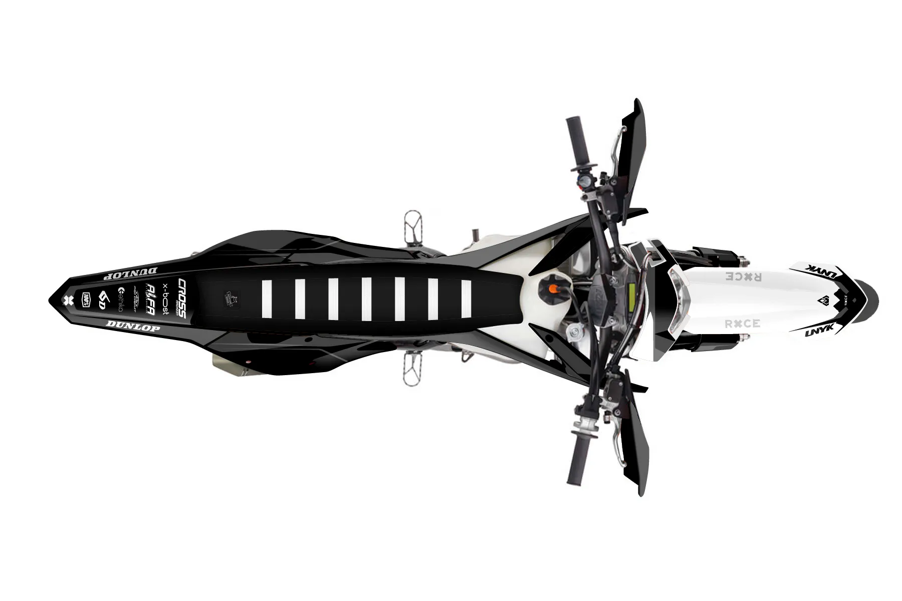 «Decal» — готовый комплект графики серии Flow для KTM Supermoto Graphic Kit KTM EXC-F 450 2017. В комплекте: графика на бак и боковые облицовки, крылья (переднее и заднее), передний щиток, номерные таблички, защита вилки. Материал: ПВХ-винил 80 мкр с холодной ламинацией 300 мкр, общая толщина 380 мкр; покрытие глянцевое или матовое на выбор. Устойчив к UV-излучению, воде, бензину и мойке высокого давления. Клей акриловый на сольвентной основе — постоянный, для гибких пластиков. На простых поверхностях монтируется без нагрева; для сложных изгибов рекомендуем фен. Этот пресет можно заказать как есть или взять за основу в конструкторе: поменять цвета, добавить стартовый номер и свой бренд. Производство — 3–5 рабочих дней, доставка по России СДЭКом или Почтой, по СНГ — курьерскими службами.
