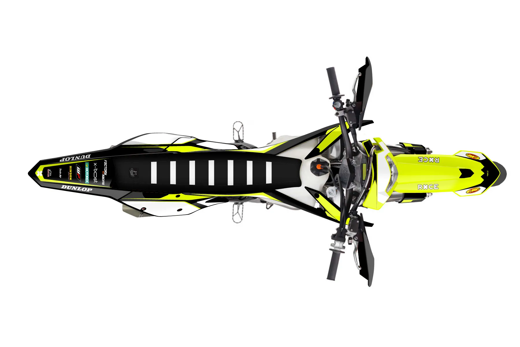 «Lucent Neon» — готовый комплект графики серии Flow для KTM Supermoto Graphic Kit KTM EXC-F 450 2017. В комплекте: графика на бак и боковые облицовки, крылья (переднее и заднее), передний щиток, номерные таблички, защита вилки. Материал: ПВХ-винил 80 мкр с холодной ламинацией 300 мкр, общая толщина 380 мкр; покрытие глянцевое или матовое на выбор. Устойчив к UV-излучению, воде, бензину и мойке высокого давления. Клей акриловый на сольвентной основе — постоянный, для гибких пластиков. На простых поверхностях монтируется без нагрева; для сложных изгибов рекомендуем фен. Этот пресет можно заказать как есть или взять за основу в конструкторе: поменять цвета, добавить стартовый номер и свой бренд. Производство — 3–5 рабочих дней, доставка по России СДЭКом или Почтой, по СНГ — курьерскими службами.