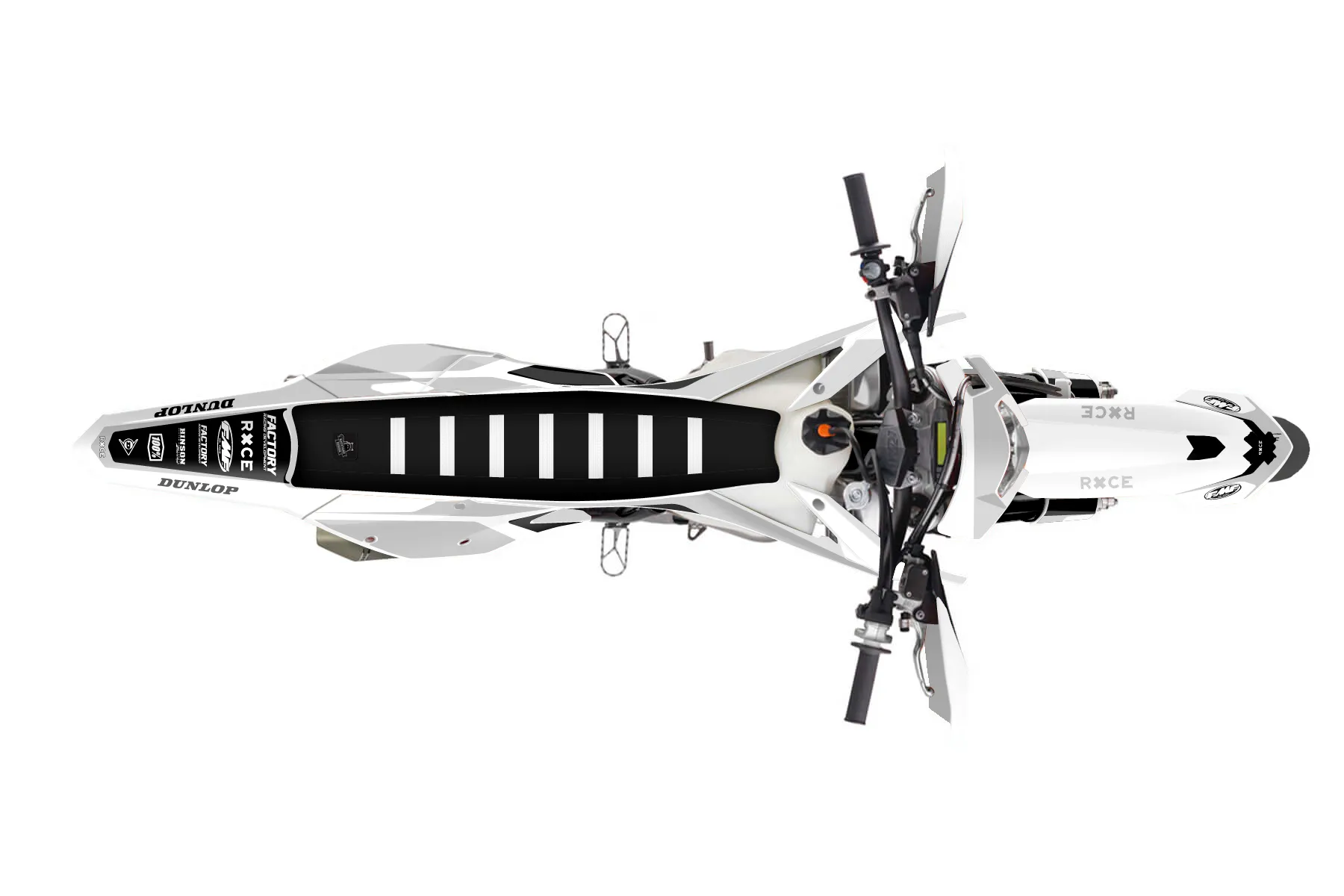 «Worx» — готовый комплект графики серии Flow для KTM Supermoto Graphic Kit KTM EXC-F 450 2017. В комплекте: графика на бак и боковые облицовки, крылья (переднее и заднее), передний щиток, номерные таблички, защита вилки. Материал: ПВХ-винил 80 мкр с холодной ламинацией 300 мкр, общая толщина 380 мкр; покрытие глянцевое или матовое на выбор. Устойчив к UV-излучению, воде, бензину и мойке высокого давления. Клей акриловый на сольвентной основе — постоянный, для гибких пластиков. На простых поверхностях монтируется без нагрева; для сложных изгибов рекомендуем фен. Этот пресет можно заказать как есть или взять за основу в конструкторе: поменять цвета, добавить стартовый номер и свой бренд. Производство — 3–5 рабочих дней, доставка по России СДЭКом или Почтой, по СНГ — курьерскими службами.