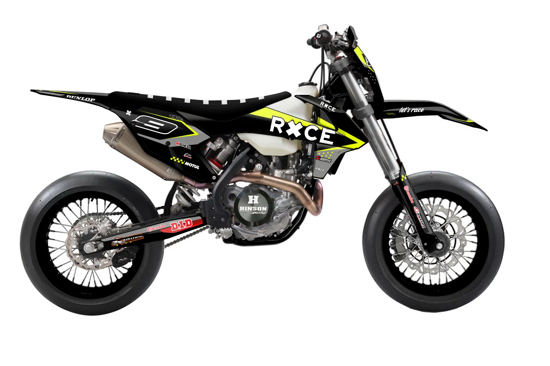 «Refuse Neon» — готовый комплект графики серии Staple для KTM Supermoto Graphic Kit KTM EXC-F 450 2017. В комплекте: графика на бак и боковые облицовки, крылья (переднее и заднее), передний щиток, номерные таблички, защита вилки. Материал: ПВХ-винил 80 мкр с холодной ламинацией 300 мкр, общая толщина 380 мкр; покрытие глянцевое или матовое на выбор. Устойчив к UV-излучению, воде, бензину и мойке высокого давления. Клей акриловый на сольвентной основе — постоянный, для гибких пластиков. На простых поверхностях монтируется без нагрева; для сложных изгибов рекомендуем фен. Этот пресет можно заказать как есть или взять за основу в конструкторе: поменять цвета, добавить стартовый номер и свой бренд. Производство — 3–5 рабочих дней, доставка по России СДЭКом или Почтой, по СНГ — курьерскими службами.