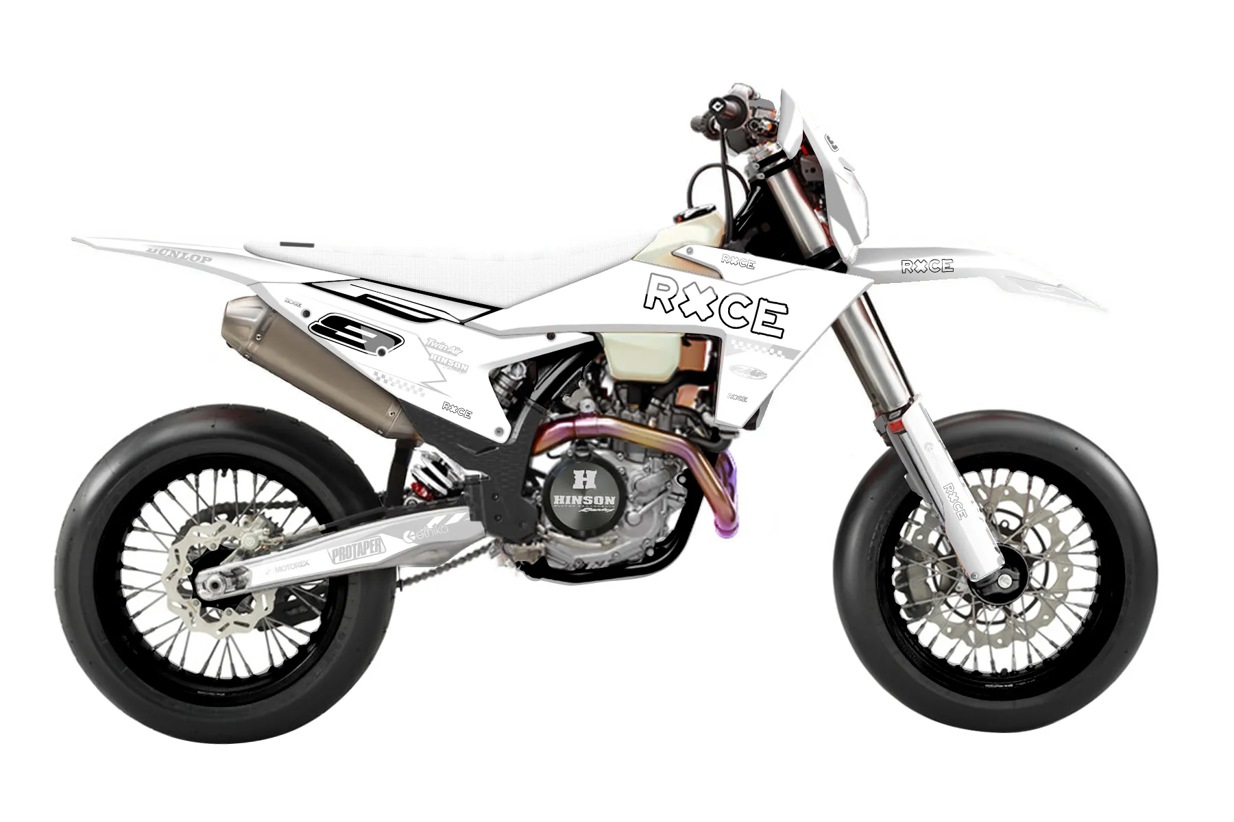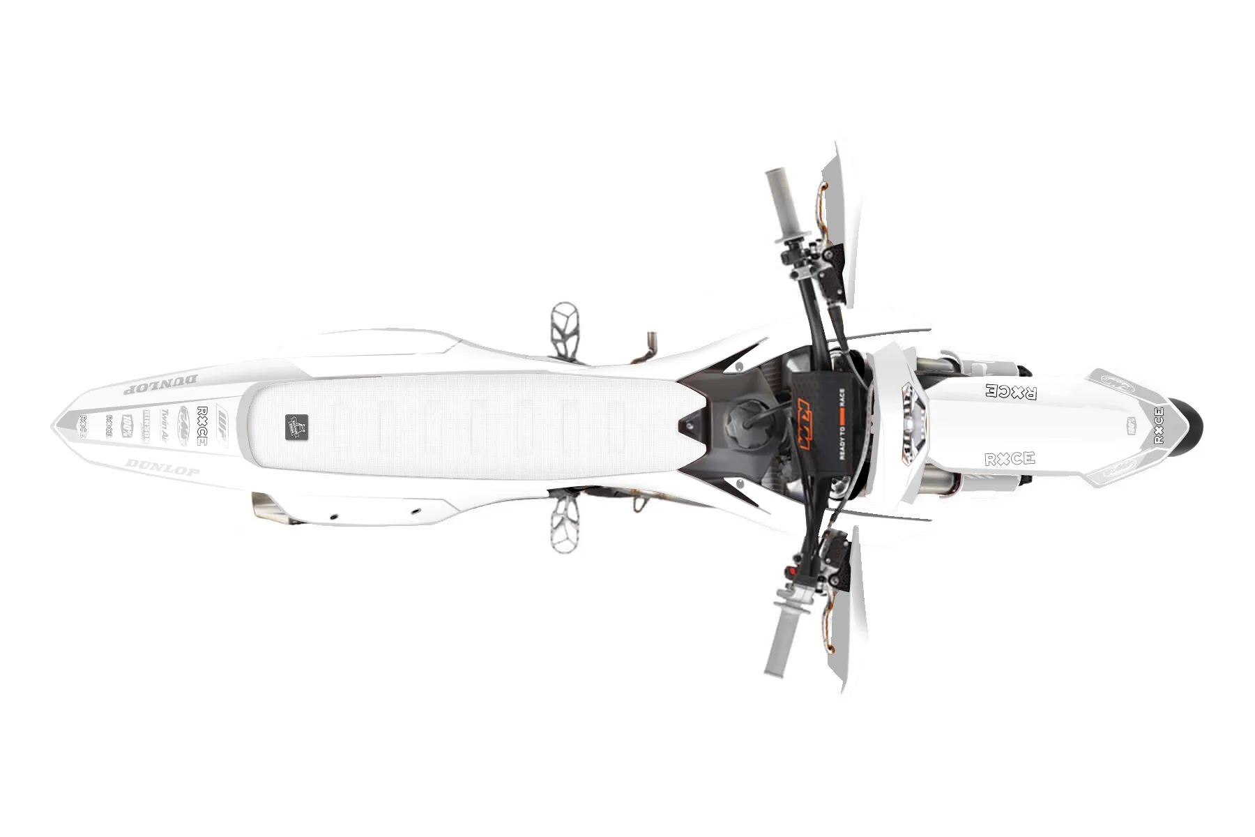 «Ghost» — готовый комплект графики серии Maverick для KTM Supermoto Graphic Kit KTM EXC-F 450 2024. В комплекте: графика на бак и боковые облицовки, крылья (переднее и заднее), передний щиток, номерные таблички, защита вилки. Материал: ПВХ-винил 80 мкр с холодной ламинацией 300 мкр, общая толщина 380 мкр; покрытие глянцевое или матовое на выбор. Устойчив к UV-излучению, воде, бензину и мойке высокого давления. Клей акриловый на сольвентной основе — постоянный, для гибких пластиков. На простых поверхностях монтируется без нагрева; для сложных изгибов рекомендуем фен. Этот пресет можно заказать как есть или взять за основу в конструкторе: поменять цвета, добавить стартовый номер и свой бренд. Производство — 3–5 рабочих дней, доставка по России СДЭКом или Почтой, по СНГ — курьерскими службами.