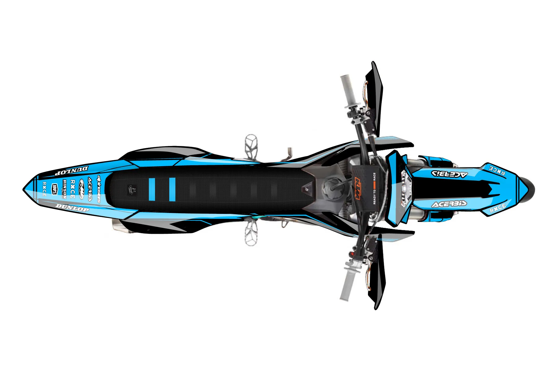 «450excbsm» — готовый комплект графики серии Untucked для KTM Supermoto Graphic Kit KTM EXC-F 450 2024. В комплекте: графика на бак и боковые облицовки, крылья (переднее и заднее), передний щиток, номерные таблички, защита вилки. Материал: ПВХ-винил 80 мкр с холодной ламинацией 300 мкр, общая толщина 380 мкр; покрытие глянцевое или матовое на выбор. Устойчив к UV-излучению, воде, бензину и мойке высокого давления. Клей акриловый на сольвентной основе — постоянный, для гибких пластиков. На простых поверхностях монтируется без нагрева; для сложных изгибов рекомендуем фен. Этот пресет можно заказать как есть или взять за основу в конструкторе: поменять цвета, добавить стартовый номер и свой бренд. Производство — 3–5 рабочих дней, доставка по России СДЭКом или Почтой, по СНГ — курьерскими службами.