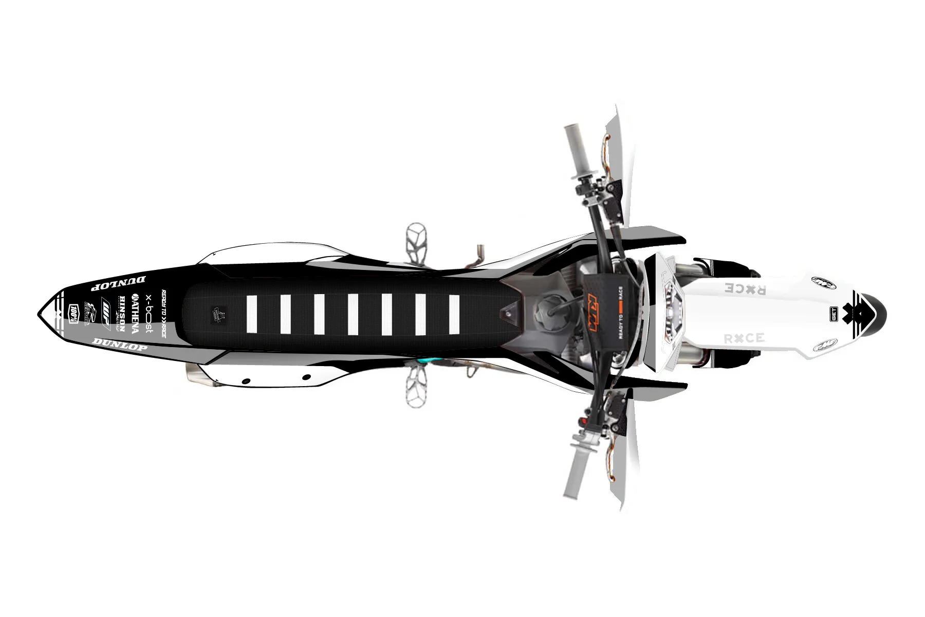«Specific» — готовый комплект графики серии Untucked для KTM Supermoto Graphic Kit KTM EXC-F 450 2024. В комплекте: графика на бак и боковые облицовки, крылья (переднее и заднее), передний щиток, номерные таблички, защита вилки. Материал: ПВХ-винил 80 мкр с холодной ламинацией 300 мкр, общая толщина 380 мкр; покрытие глянцевое или матовое на выбор. Устойчив к UV-излучению, воде, бензину и мойке высокого давления. Клей акриловый на сольвентной основе — постоянный, для гибких пластиков. На простых поверхностях монтируется без нагрева; для сложных изгибов рекомендуем фен. Этот пресет можно заказать как есть или взять за основу в конструкторе: поменять цвета, добавить стартовый номер и свой бренд. Производство — 3–5 рабочих дней, доставка по России СДЭКом или Почтой, по СНГ — курьерскими службами.