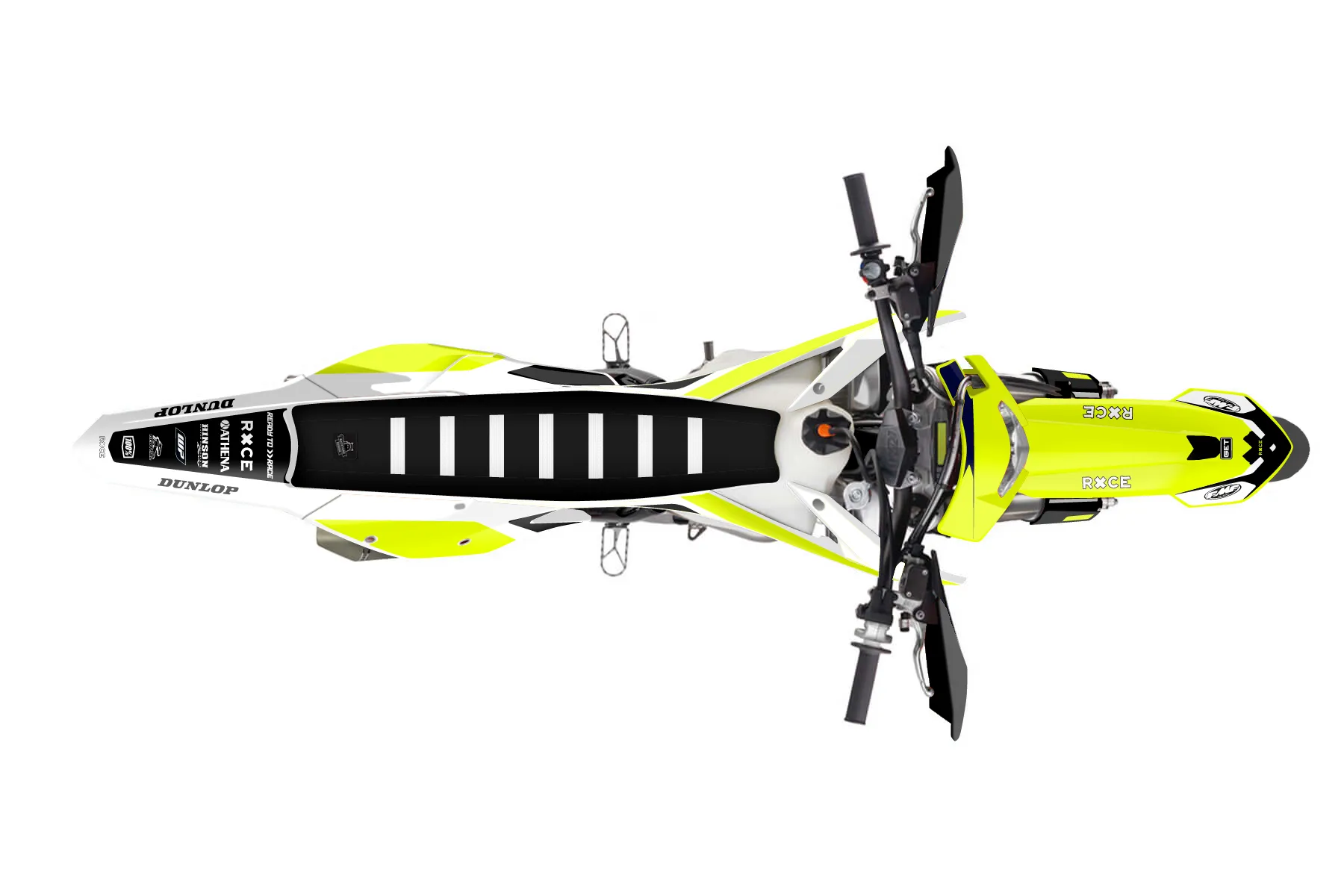 «Rise Fluo» — готовый комплект графики серии Flow для KTM Supermoto Graphic Kit KTM EXC-F 500 2017. В комплекте: графика на бак и боковые облицовки, крылья (переднее и заднее), передний щиток, номерные таблички, защита вилки. Материал: ПВХ-винил 80 мкр с холодной ламинацией 300 мкр, общая толщина 380 мкр; покрытие глянцевое или матовое на выбор. Устойчив к UV-излучению, воде, бензину и мойке высокого давления. Клей акриловый на сольвентной основе — постоянный, для гибких пластиков. На простых поверхностях монтируется без нагрева; для сложных изгибов рекомендуем фен. Этот пресет можно заказать как есть или взять за основу в конструкторе: поменять цвета, добавить стартовый номер и свой бренд. Производство — 3–5 рабочих дней, доставка по России СДЭКом или Почтой, по СНГ — курьерскими службами.