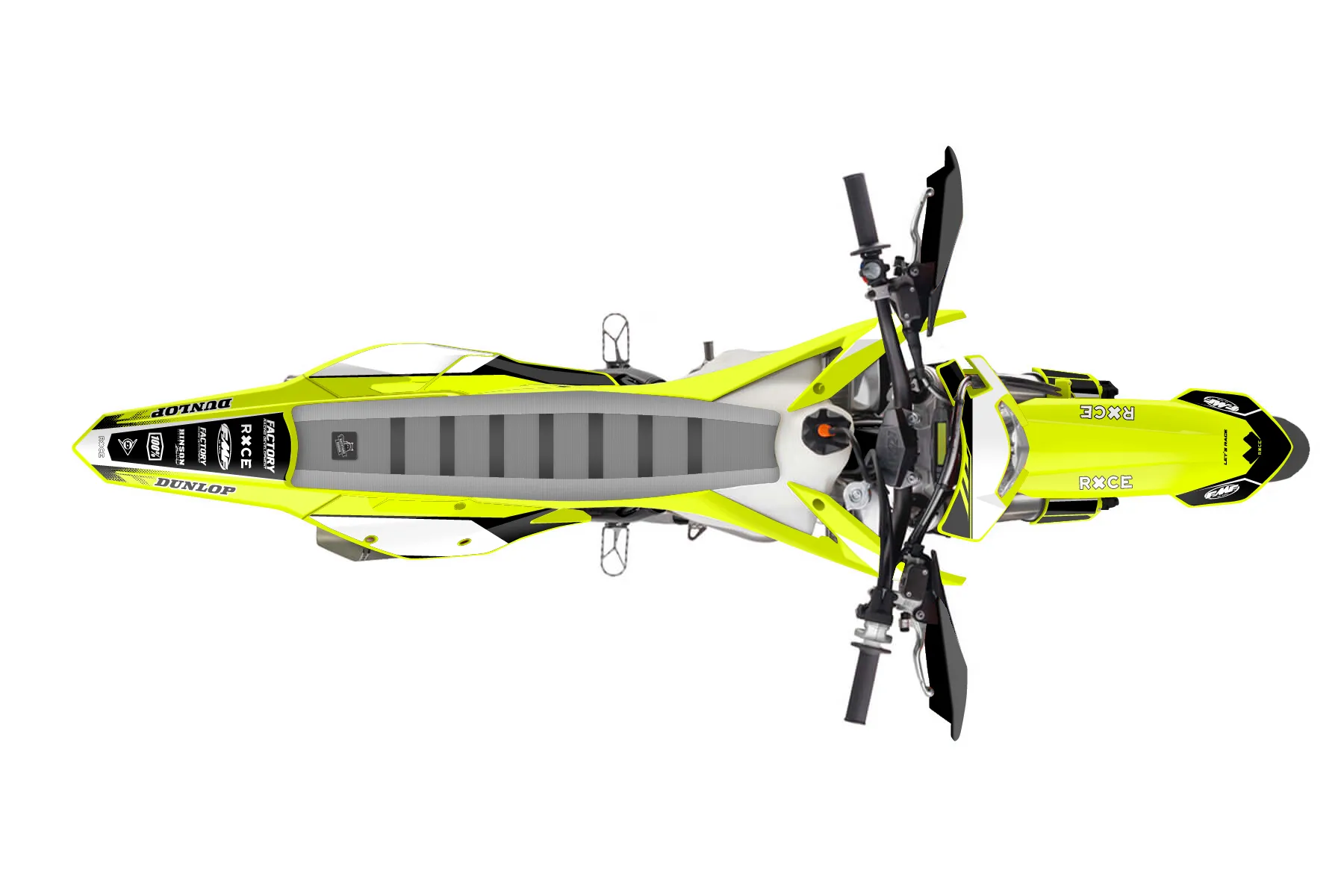 «Bright Neon» — готовый комплект графики серии Maverick для KTM Supermoto Graphic Kit KTM EXC-F 500 2017. В комплекте: графика на бак и боковые облицовки, крылья (переднее и заднее), передний щиток, номерные таблички, защита вилки. Материал: ПВХ-винил 80 мкр с холодной ламинацией 300 мкр, общая толщина 380 мкр; покрытие глянцевое или матовое на выбор. Устойчив к UV-излучению, воде, бензину и мойке высокого давления. Клей акриловый на сольвентной основе — постоянный, для гибких пластиков. На простых поверхностях монтируется без нагрева; для сложных изгибов рекомендуем фен. Этот пресет можно заказать как есть или взять за основу в конструкторе: поменять цвета, добавить стартовый номер и свой бренд. Производство — 3–5 рабочих дней, доставка по России СДЭКом или Почтой, по СНГ — курьерскими службами.