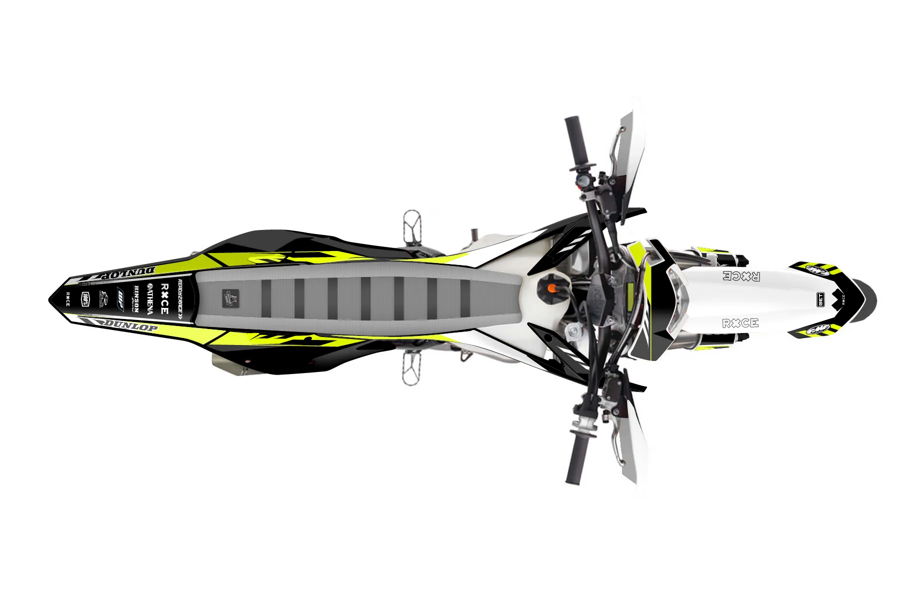 «Grip Neon» — готовый комплект графики серии Maverick для KTM Supermoto Graphic Kit KTM EXC-F 500 2017. В комплекте: графика на бак и боковые облицовки, крылья (переднее и заднее), передний щиток, номерные таблички, защита вилки. Материал: ПВХ-винил 80 мкр с холодной ламинацией 300 мкр, общая толщина 380 мкр; покрытие глянцевое или матовое на выбор. Устойчив к UV-излучению, воде, бензину и мойке высокого давления. Клей акриловый на сольвентной основе — постоянный, для гибких пластиков. На простых поверхностях монтируется без нагрева; для сложных изгибов рекомендуем фен. Этот пресет можно заказать как есть или взять за основу в конструкторе: поменять цвета, добавить стартовый номер и свой бренд. Производство — 3–5 рабочих дней, доставка по России СДЭКом или Почтой, по СНГ — курьерскими службами.