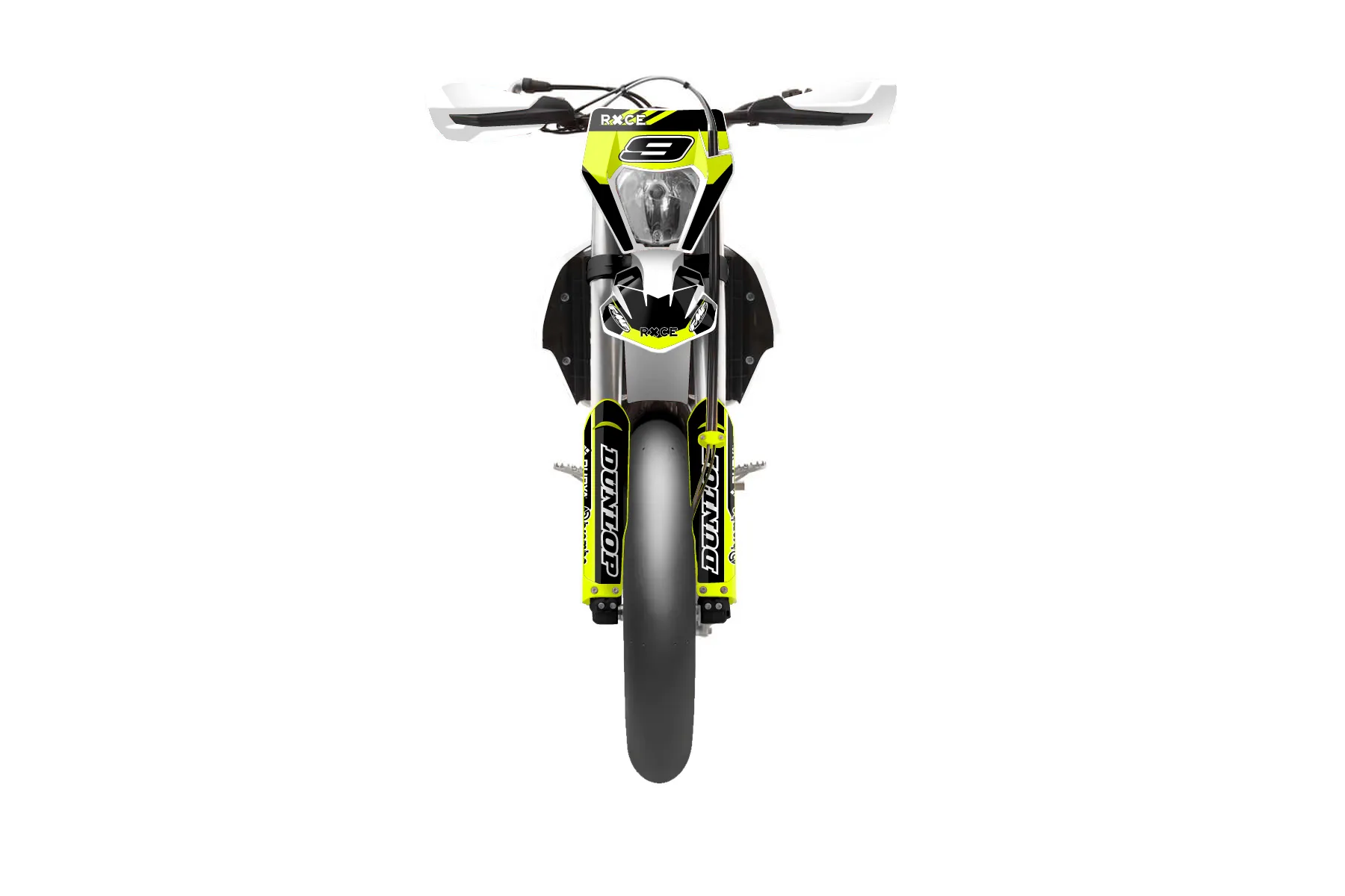 «Ryder Neon» — готовый комплект графики серии Maverick для KTM Supermoto Graphic Kit KTM EXC-F 500 2017. В комплекте: графика на бак и боковые облицовки, крылья (переднее и заднее), передний щиток, номерные таблички, защита вилки. Материал: ПВХ-винил 80 мкр с холодной ламинацией 300 мкр, общая толщина 380 мкр; покрытие глянцевое или матовое на выбор. Устойчив к UV-излучению, воде, бензину и мойке высокого давления. Клей акриловый на сольвентной основе — постоянный, для гибких пластиков. На простых поверхностях монтируется без нагрева; для сложных изгибов рекомендуем фен. Этот пресет можно заказать как есть или взять за основу в конструкторе: поменять цвета, добавить стартовый номер и свой бренд. Производство — 3–5 рабочих дней, доставка по России СДЭКом или Почтой, по СНГ — курьерскими службами.