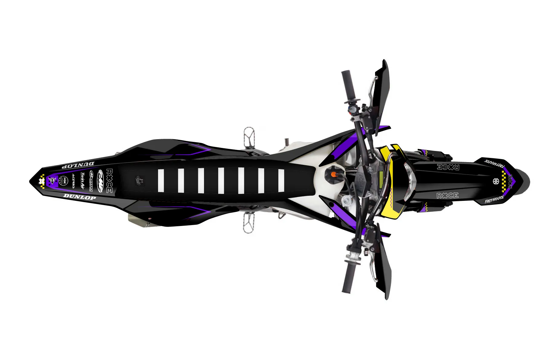 «Virtual» — готовый комплект графики серии Staple для KTM Supermoto Graphic Kit KTM EXC-F 500 2017. В комплекте: графика на бак и боковые облицовки, крылья (переднее и заднее), передний щиток, номерные таблички, защита вилки. Материал: ПВХ-винил 80 мкр с холодной ламинацией 300 мкр, общая толщина 380 мкр; покрытие глянцевое или матовое на выбор. Устойчив к UV-излучению, воде, бензину и мойке высокого давления. Клей акриловый на сольвентной основе — постоянный, для гибких пластиков. На простых поверхностях монтируется без нагрева; для сложных изгибов рекомендуем фен. Этот пресет можно заказать как есть или взять за основу в конструкторе: поменять цвета, добавить стартовый номер и свой бренд. Производство — 3–5 рабочих дней, доставка по России СДЭКом или Почтой, по СНГ — курьерскими службами.