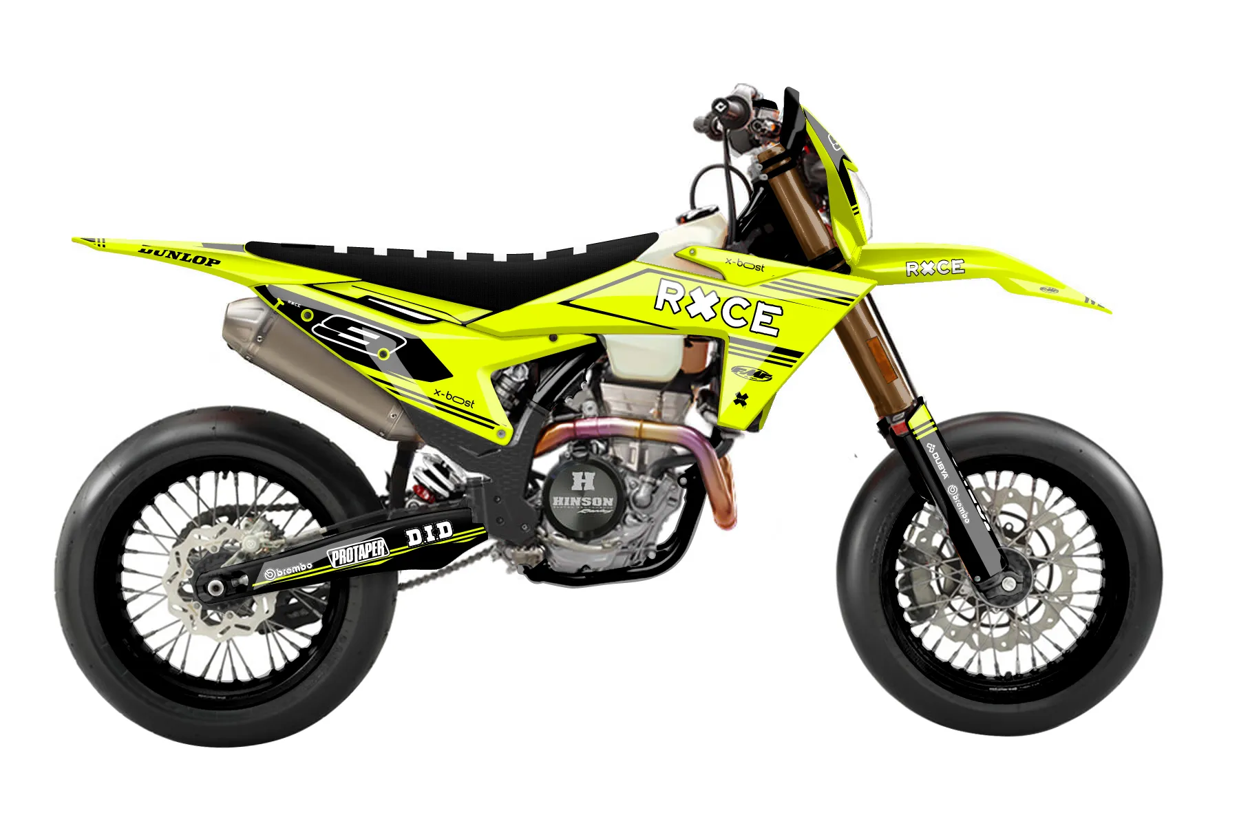 «Loose Neon» — готовый комплект графики серии Untucked для KTM Supermoto Graphic Kit KTM EXC-F 500 2024. В комплекте: графика на бак и боковые облицовки, крылья (переднее и заднее), передний щиток, номерные таблички, защита вилки. Материал: ПВХ-винил 80 мкр с холодной ламинацией 300 мкр, общая толщина 380 мкр; покрытие глянцевое или матовое на выбор. Устойчив к UV-излучению, воде, бензину и мойке высокого давления. Клей акриловый на сольвентной основе — постоянный, для гибких пластиков. На простых поверхностях монтируется без нагрева; для сложных изгибов рекомендуем фен. Этот пресет можно заказать как есть или взять за основу в конструкторе: поменять цвета, добавить стартовый номер и свой бренд. Производство — 3–5 рабочих дней, доставка по России СДЭКом или Почтой, по СНГ — курьерскими службами.
