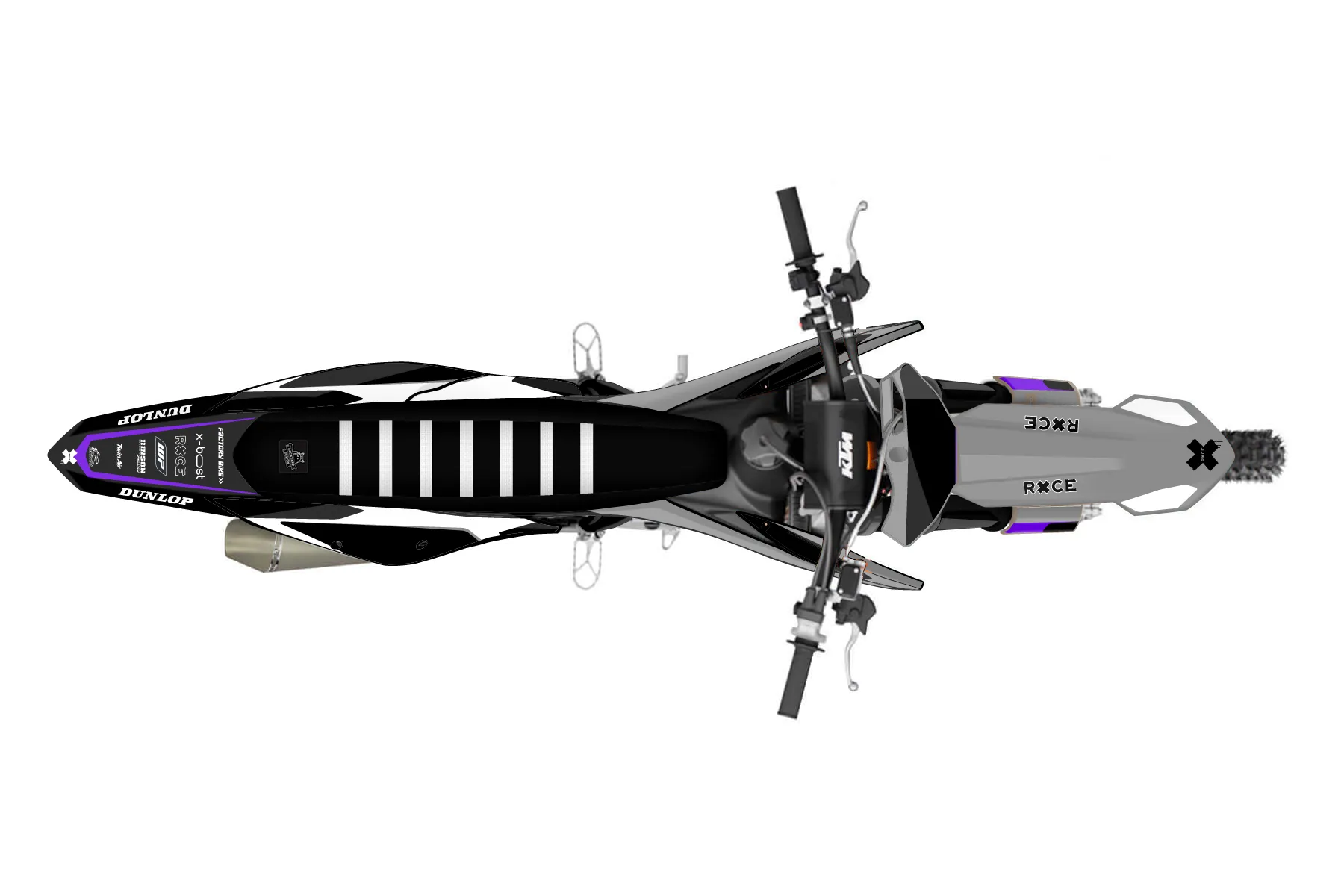 «Cyber Pirate» — готовый комплект графики серии Flow для KTM Supermoto Graphic Kit KTM SMC 690 2019. В комплекте: графика на бак и боковые облицовки, крылья (переднее и заднее), передний щиток, номерные таблички, защита вилки. Материал: ПВХ-винил 80 мкр с холодной ламинацией 300 мкр, общая толщина 380 мкр; покрытие глянцевое или матовое на выбор. Устойчив к UV-излучению, воде, бензину и мойке высокого давления. Клей акриловый на сольвентной основе — постоянный, для гибких пластиков. На простых поверхностях монтируется без нагрева; для сложных изгибов рекомендуем фен. Этот пресет можно заказать как есть или взять за основу в конструкторе: поменять цвета, добавить стартовый номер и свой бренд. Производство — 3–5 рабочих дней, доставка по России СДЭКом или Почтой, по СНГ — курьерскими службами.