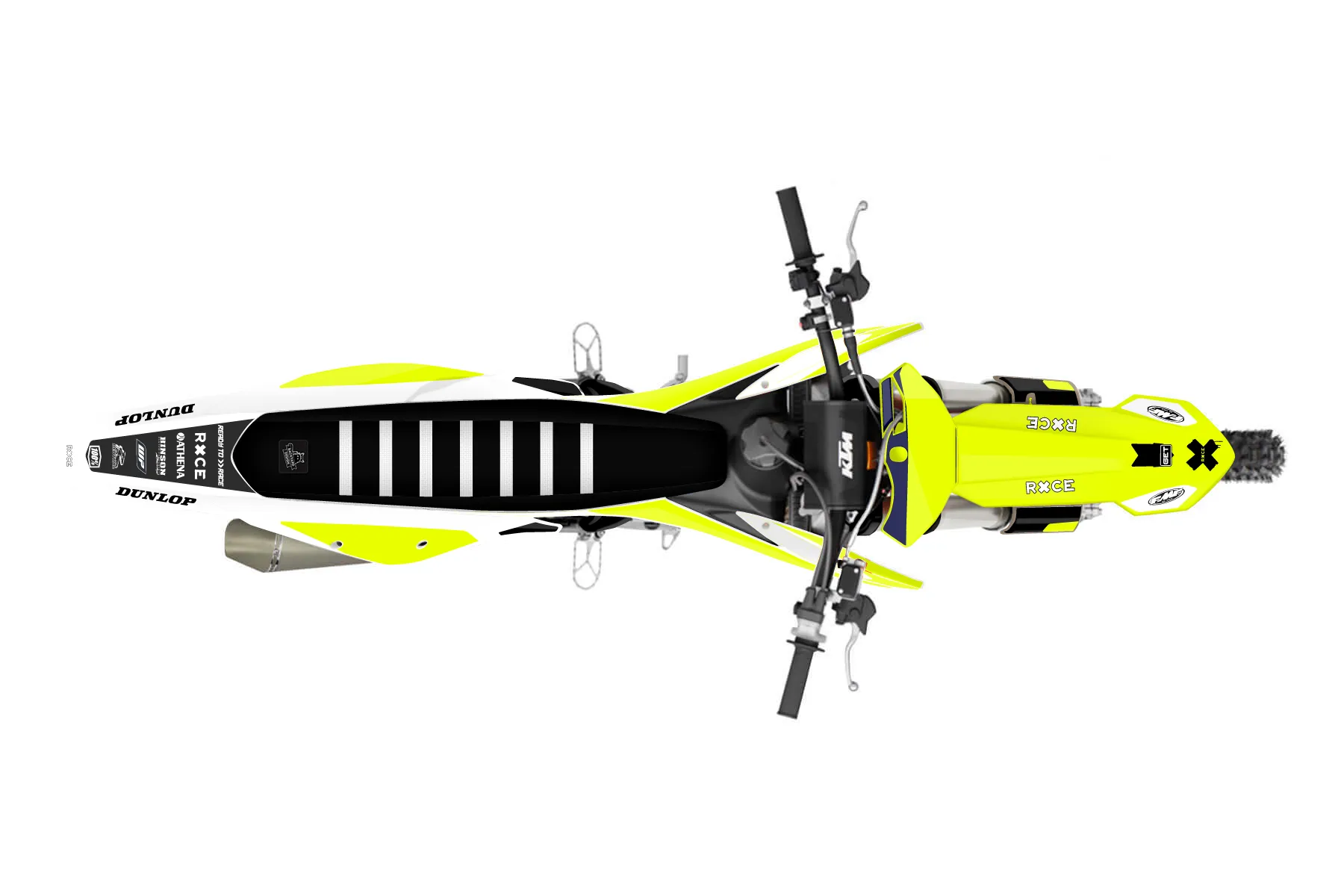 «Rise Fluo» — готовый комплект графики серии Flow для KTM Supermoto Graphic Kit KTM SMC 690 2019. В комплекте: графика на бак и боковые облицовки, крылья (переднее и заднее), передний щиток, номерные таблички, защита вилки. Материал: ПВХ-винил 80 мкр с холодной ламинацией 300 мкр, общая толщина 380 мкр; покрытие глянцевое или матовое на выбор. Устойчив к UV-излучению, воде, бензину и мойке высокого давления. Клей акриловый на сольвентной основе — постоянный, для гибких пластиков. На простых поверхностях монтируется без нагрева; для сложных изгибов рекомендуем фен. Этот пресет можно заказать как есть или взять за основу в конструкторе: поменять цвета, добавить стартовый номер и свой бренд. Производство — 3–5 рабочих дней, доставка по России СДЭКом или Почтой, по СНГ — курьерскими службами.