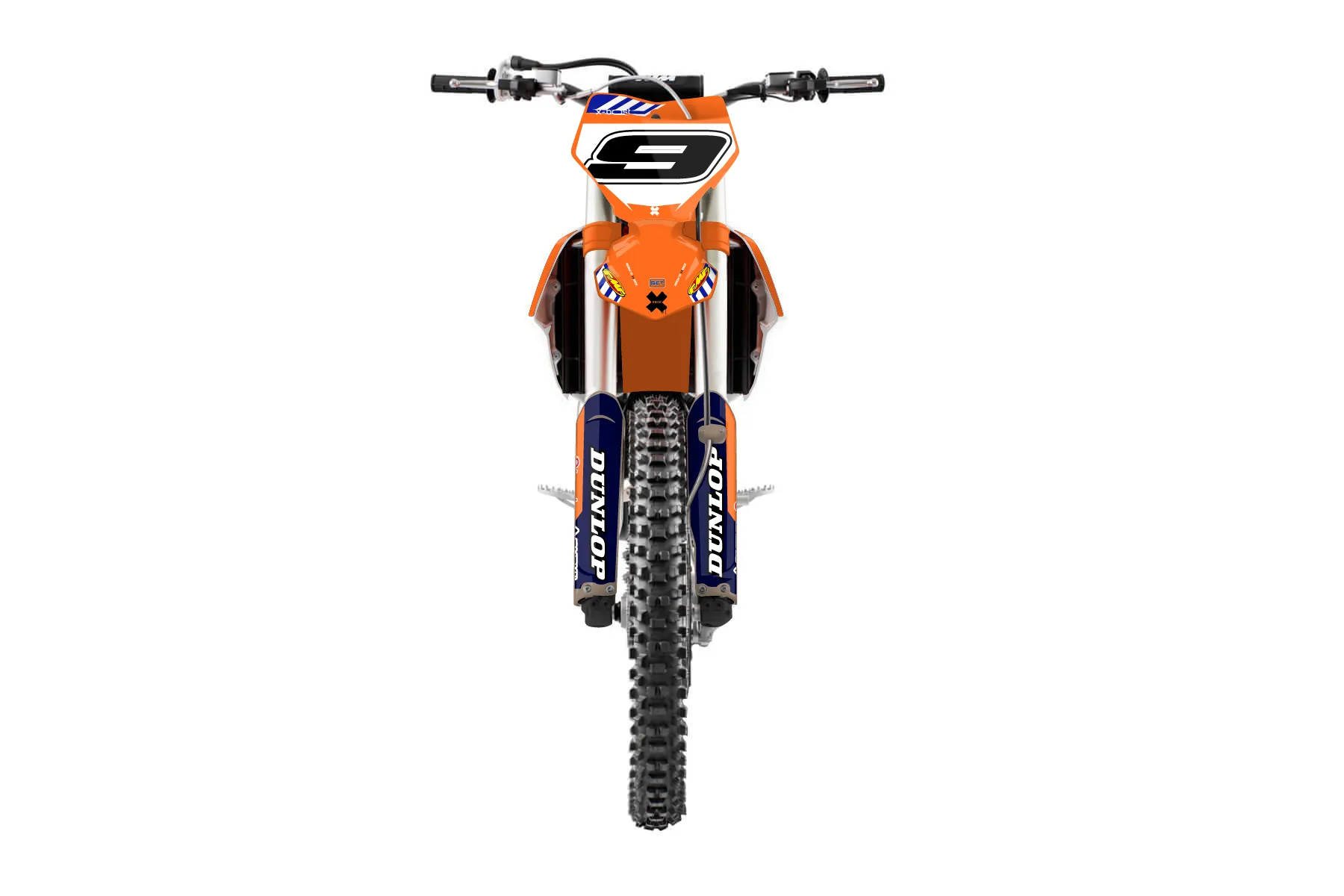 «Fuzion» — готовый комплект графики серии Maverick для KTM Supermoto Graphic Kit KTM SMC 690 2019. В комплекте: графика на бак и боковые облицовки, крылья (переднее и заднее), передний щиток, номерные таблички, защита вилки. Материал: ПВХ-винил 80 мкр с холодной ламинацией 300 мкр, общая толщина 380 мкр; покрытие глянцевое или матовое на выбор. Устойчив к UV-излучению, воде, бензину и мойке высокого давления. Клей акриловый на сольвентной основе — постоянный, для гибких пластиков. На простых поверхностях монтируется без нагрева; для сложных изгибов рекомендуем фен. Этот пресет можно заказать как есть или взять за основу в конструкторе: поменять цвета, добавить стартовый номер и свой бренд. Производство — 3–5 рабочих дней, доставка по России СДЭКом или Почтой, по СНГ — курьерскими службами.