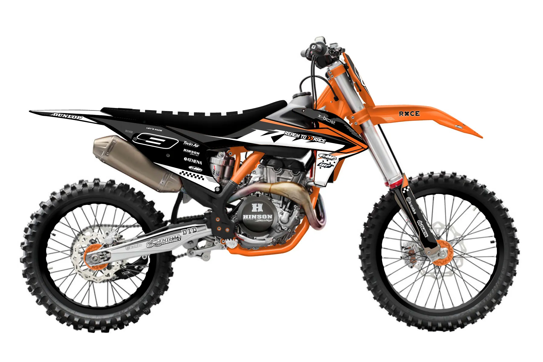 «4Time» — готовый комплект графики серии Staple для KTM Supermoto Graphic Kit KTM SMC 690 2019. В комплекте: графика на бак и боковые облицовки, крылья (переднее и заднее), передний щиток, номерные таблички, защита вилки. Материал: ПВХ-винил 80 мкр с холодной ламинацией 300 мкр, общая толщина 380 мкр; покрытие глянцевое или матовое на выбор. Устойчив к UV-излучению, воде, бензину и мойке высокого давления. Клей акриловый на сольвентной основе — постоянный, для гибких пластиков. На простых поверхностях монтируется без нагрева; для сложных изгибов рекомендуем фен. Этот пресет можно заказать как есть или взять за основу в конструкторе: поменять цвета, добавить стартовый номер и свой бренд. Производство — 3–5 рабочих дней, доставка по России СДЭКом или Почтой, по СНГ — курьерскими службами.