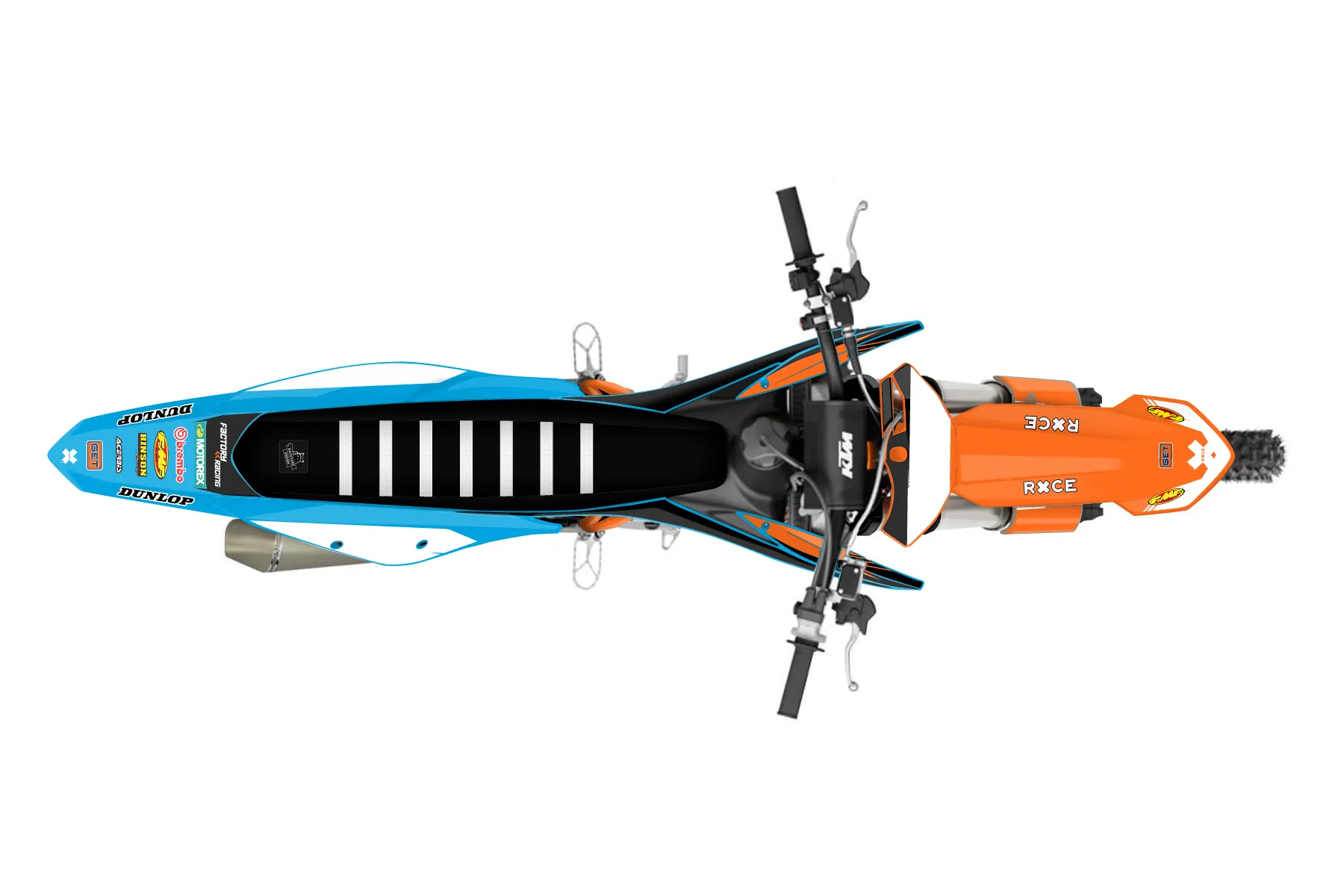 «Electrical» — готовый комплект графики серии Untucked для KTM Supermoto Graphic Kit KTM SMC 690 2019. В комплекте: графика на бак и боковые облицовки, крылья (переднее и заднее), передний щиток, номерные таблички, защита вилки. Материал: ПВХ-винил 80 мкр с холодной ламинацией 300 мкр, общая толщина 380 мкр; покрытие глянцевое или матовое на выбор. Устойчив к UV-излучению, воде, бензину и мойке высокого давления. Клей акриловый на сольвентной основе — постоянный, для гибких пластиков. На простых поверхностях монтируется без нагрева; для сложных изгибов рекомендуем фен. Этот пресет можно заказать как есть или взять за основу в конструкторе: поменять цвета, добавить стартовый номер и свой бренд. Производство — 3–5 рабочих дней, доставка по России СДЭКом или Почтой, по СНГ — курьерскими службами.