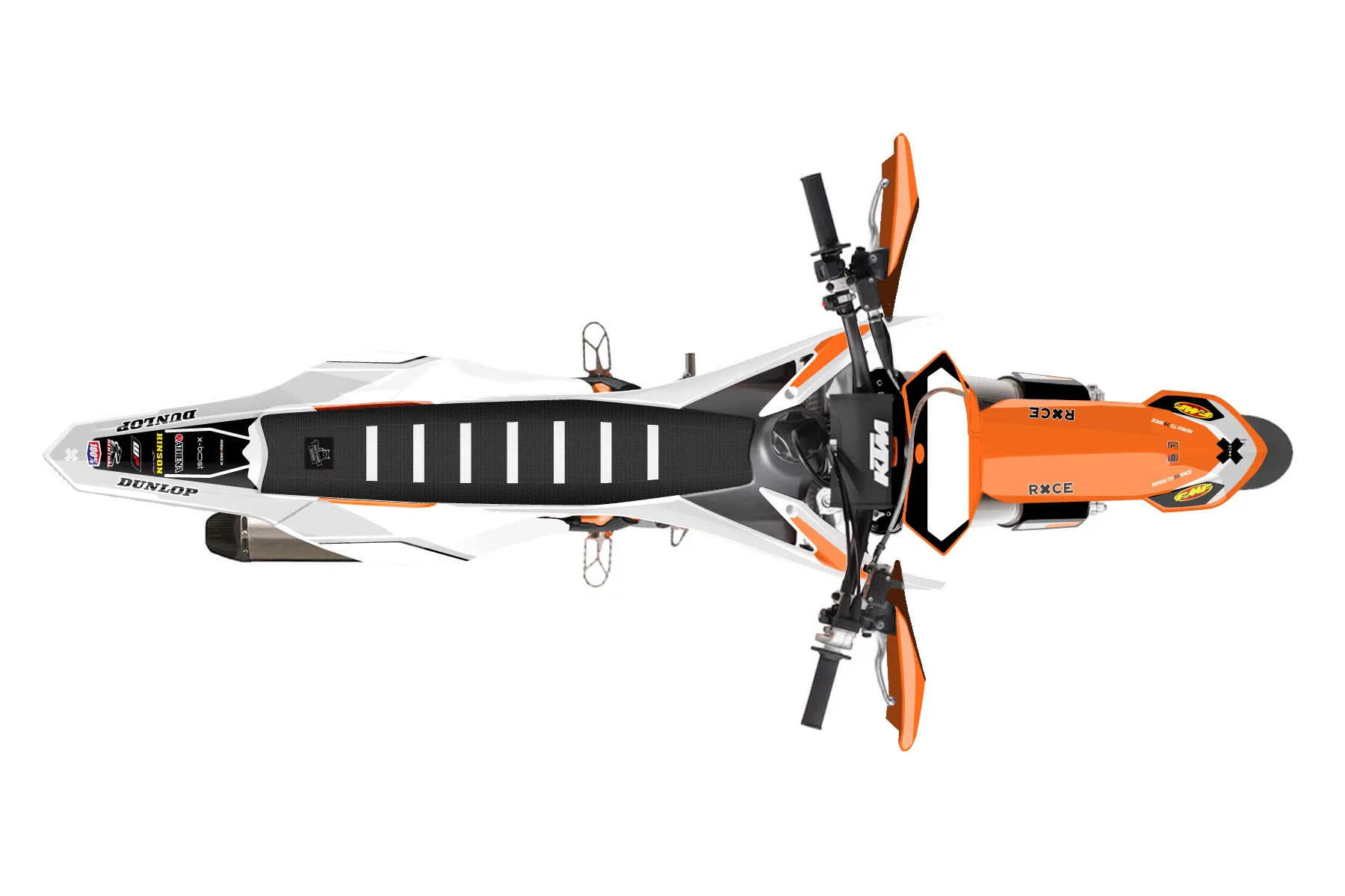 «Answer» — готовый комплект графики серии Flow для KTM Supermoto KTM SMR 450 2013. В комплекте: графика на бак и боковые облицовки, крылья (переднее и заднее), передний щиток, номерные таблички, защита вилки. Материал: ПВХ-винил 80 мкр с холодной ламинацией 300 мкр, общая толщина 380 мкр; покрытие глянцевое или матовое на выбор. Устойчив к UV-излучению, воде, бензину и мойке высокого давления. Клей акриловый на сольвентной основе — постоянный, для гибких пластиков. На простых поверхностях монтируется без нагрева; для сложных изгибов рекомендуем фен. Этот пресет можно заказать как есть или взять за основу в конструкторе: поменять цвета, добавить стартовый номер и свой бренд. Производство — 3–5 рабочих дней, доставка по России СДЭКом или Почтой, по СНГ — курьерскими службами.