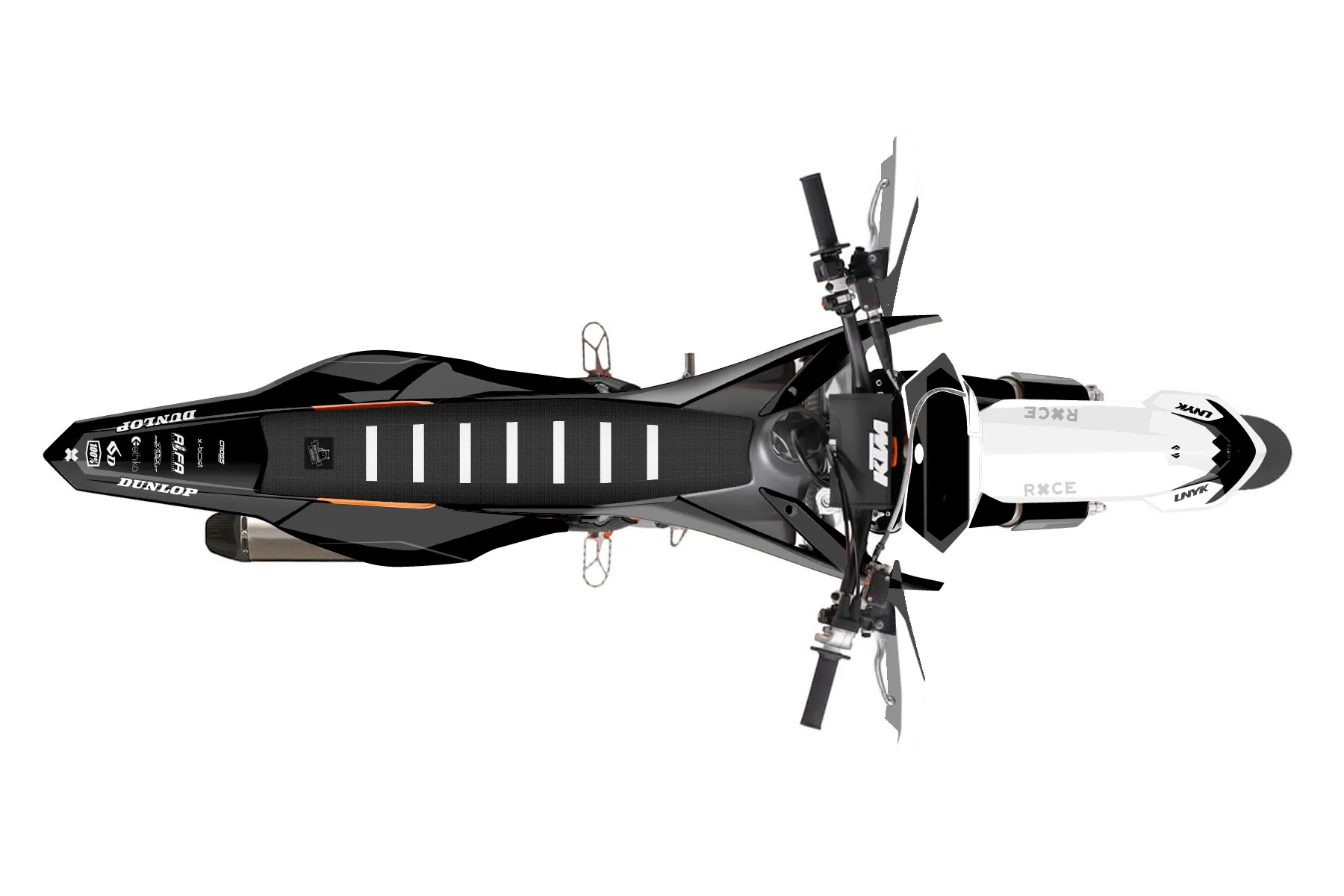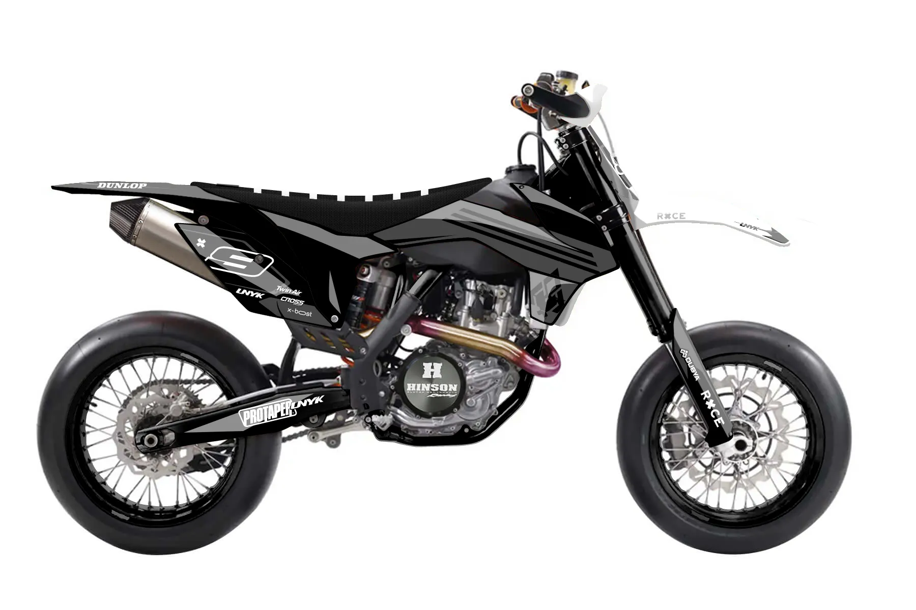«Decal» — готовый комплект графики серии Flow для KTM Supermoto KTM SMR 450 2013. В комплекте: графика на бак и боковые облицовки, крылья (переднее и заднее), передний щиток, номерные таблички, защита вилки. Материал: ПВХ-винил 80 мкр с холодной ламинацией 300 мкр, общая толщина 380 мкр; покрытие глянцевое или матовое на выбор. Устойчив к UV-излучению, воде, бензину и мойке высокого давления. Клей акриловый на сольвентной основе — постоянный, для гибких пластиков. На простых поверхностях монтируется без нагрева; для сложных изгибов рекомендуем фен. Этот пресет можно заказать как есть или взять за основу в конструкторе: поменять цвета, добавить стартовый номер и свой бренд. Производство — 3–5 рабочих дней, доставка по России СДЭКом или Почтой, по СНГ — курьерскими службами.