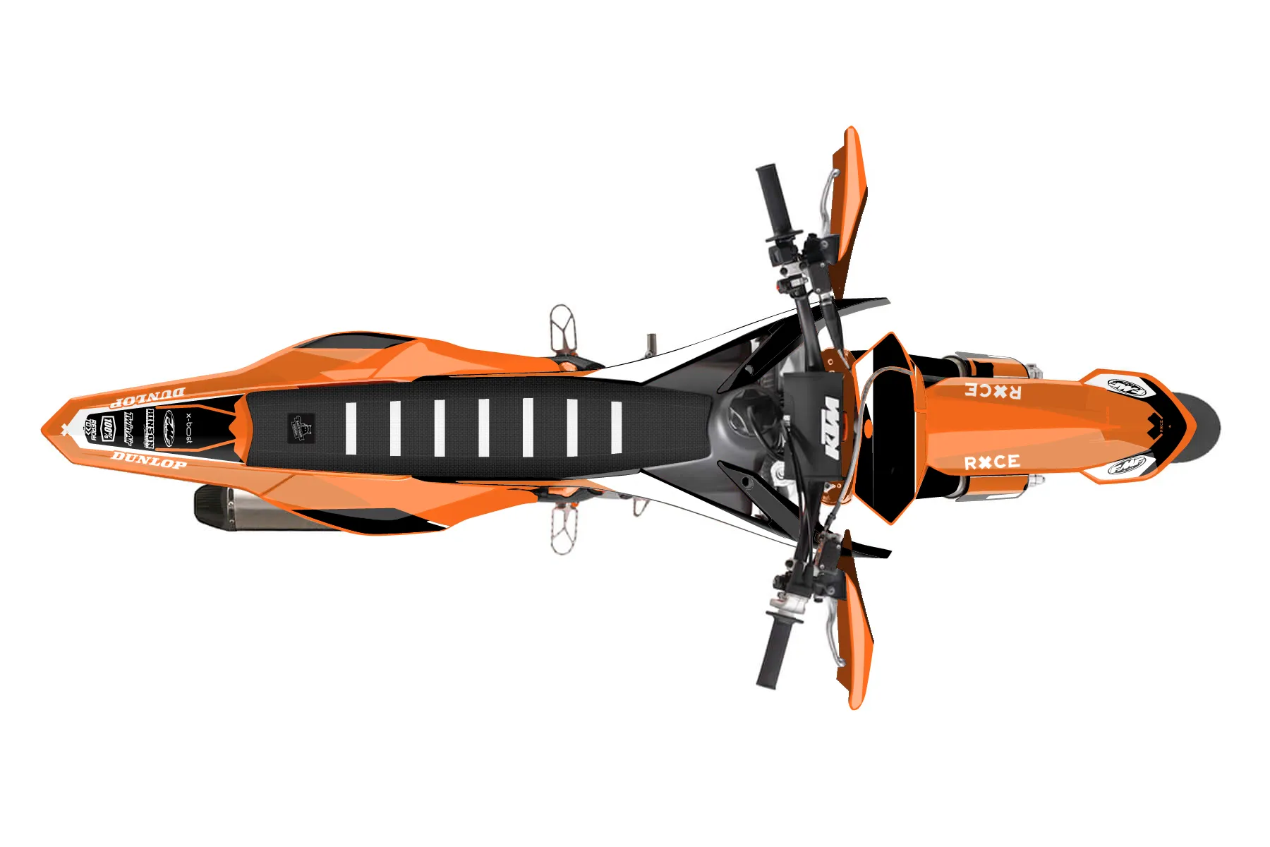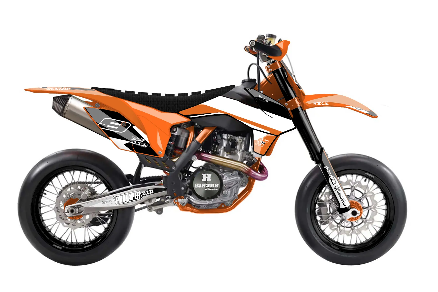 «Race» — готовый комплект графики серии Flow для KTM Supermoto KTM SMR 450 2013. В комплекте: графика на бак и боковые облицовки, крылья (переднее и заднее), передний щиток, номерные таблички, защита вилки. Материал: ПВХ-винил 80 мкр с холодной ламинацией 300 мкр, общая толщина 380 мкр; покрытие глянцевое или матовое на выбор. Устойчив к UV-излучению, воде, бензину и мойке высокого давления. Клей акриловый на сольвентной основе — постоянный, для гибких пластиков. На простых поверхностях монтируется без нагрева; для сложных изгибов рекомендуем фен. Этот пресет можно заказать как есть или взять за основу в конструкторе: поменять цвета, добавить стартовый номер и свой бренд. Производство — 3–5 рабочих дней, доставка по России СДЭКом или Почтой, по СНГ — курьерскими службами.