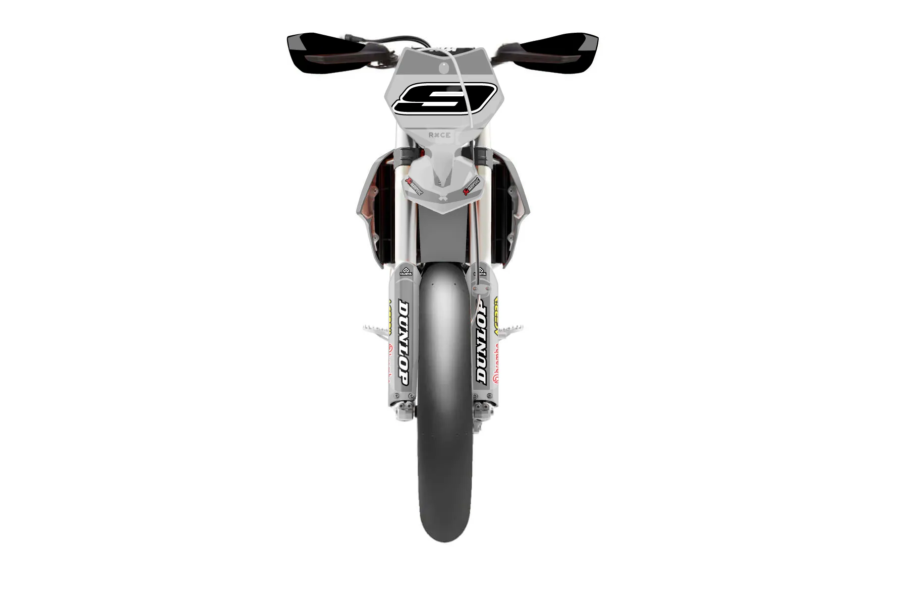 «Simple» — готовый комплект графики серии Flow для KTM Supermoto KTM SMR 450 2013. В комплекте: графика на бак и боковые облицовки, крылья (переднее и заднее), передний щиток, номерные таблички, защита вилки. Материал: ПВХ-винил 80 мкр с холодной ламинацией 300 мкр, общая толщина 380 мкр; покрытие глянцевое или матовое на выбор. Устойчив к UV-излучению, воде, бензину и мойке высокого давления. Клей акриловый на сольвентной основе — постоянный, для гибких пластиков. На простых поверхностях монтируется без нагрева; для сложных изгибов рекомендуем фен. Этот пресет можно заказать как есть или взять за основу в конструкторе: поменять цвета, добавить стартовый номер и свой бренд. Производство — 3–5 рабочих дней, доставка по России СДЭКом или Почтой, по СНГ — курьерскими службами.