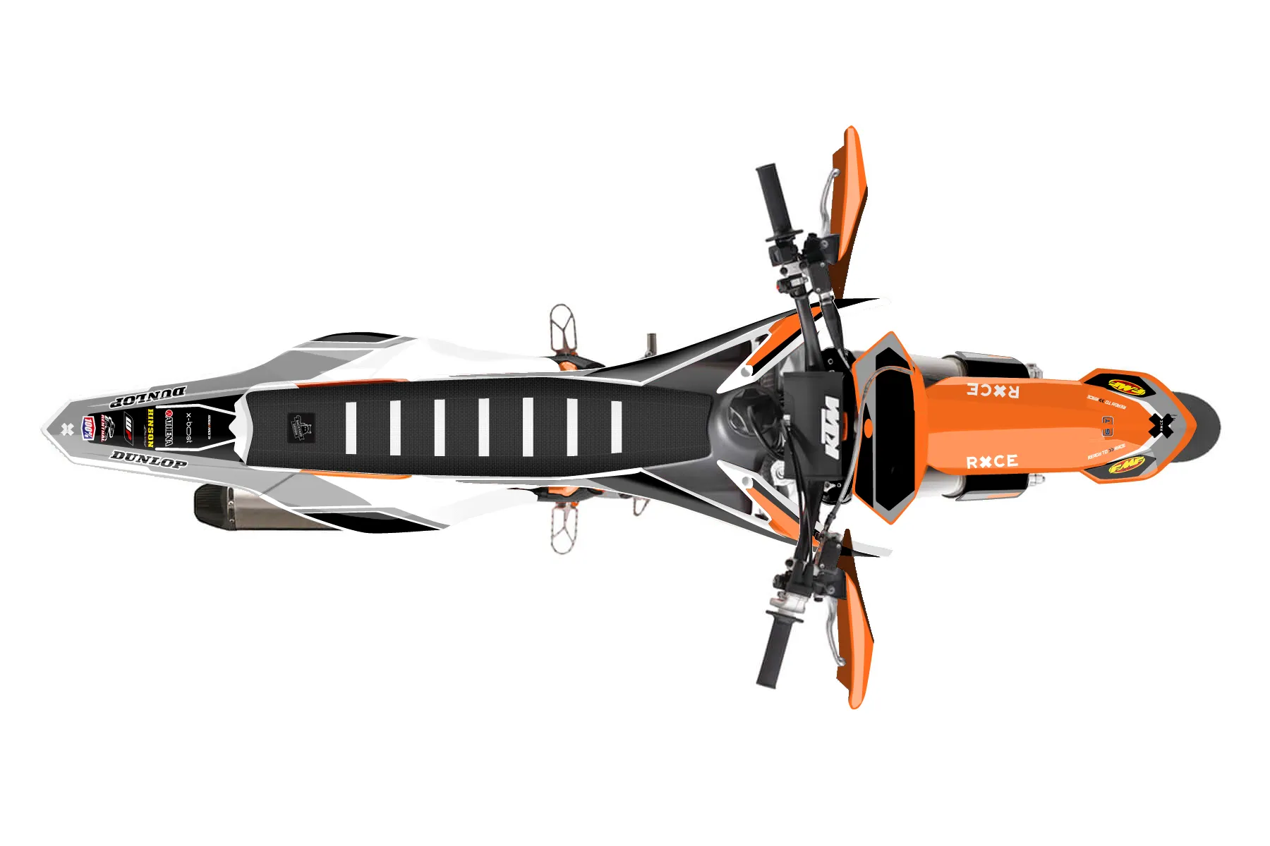 «Throwback» — готовый комплект графики серии Flow для KTM Supermoto KTM SMR 450 2013. В комплекте: графика на бак и боковые облицовки, крылья (переднее и заднее), передний щиток, номерные таблички, защита вилки. Материал: ПВХ-винил 80 мкр с холодной ламинацией 300 мкр, общая толщина 380 мкр; покрытие глянцевое или матовое на выбор. Устойчив к UV-излучению, воде, бензину и мойке высокого давления. Клей акриловый на сольвентной основе — постоянный, для гибких пластиков. На простых поверхностях монтируется без нагрева; для сложных изгибов рекомендуем фен. Этот пресет можно заказать как есть или взять за основу в конструкторе: поменять цвета, добавить стартовый номер и свой бренд. Производство — 3–5 рабочих дней, доставка по России СДЭКом или Почтой, по СНГ — курьерскими службами.