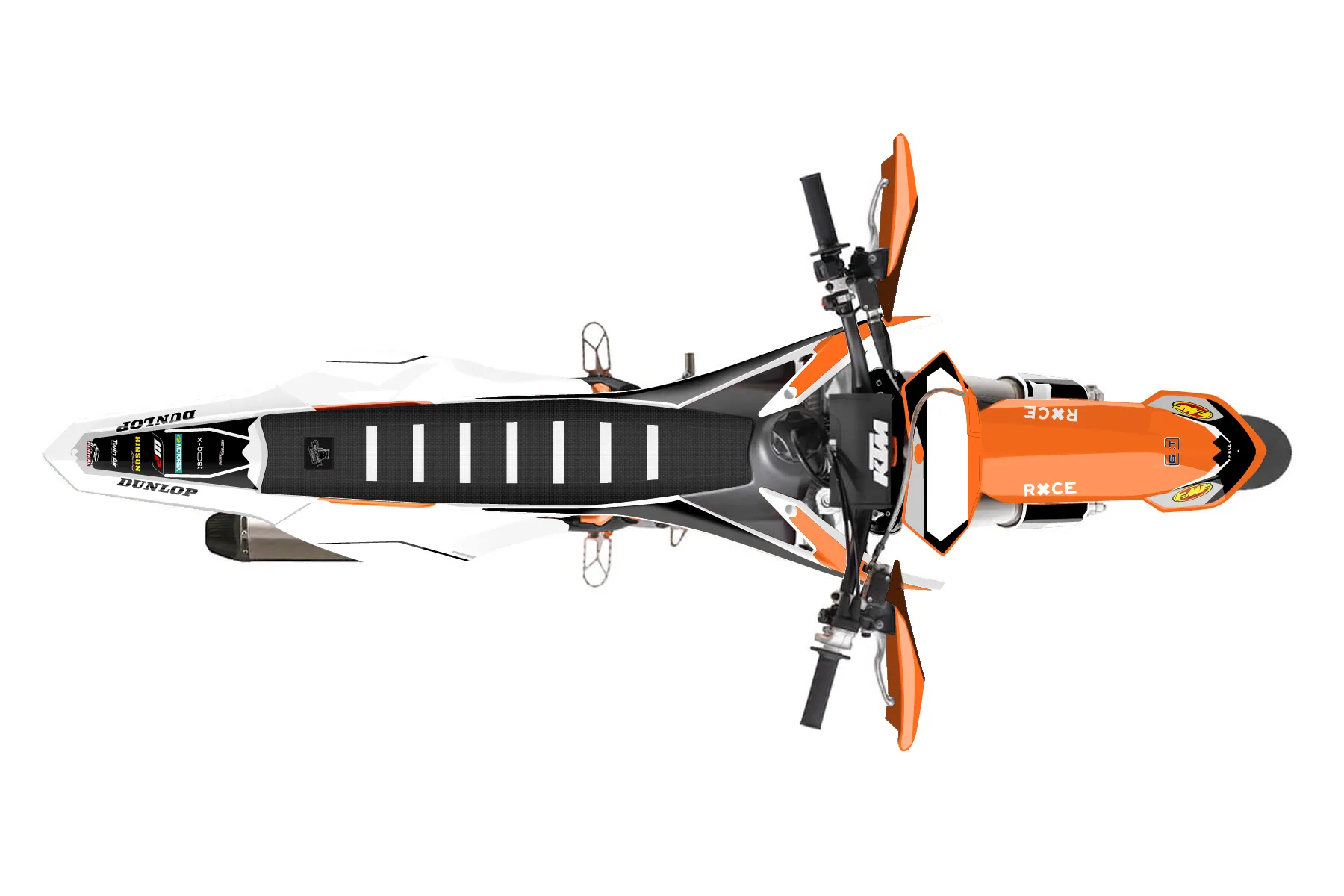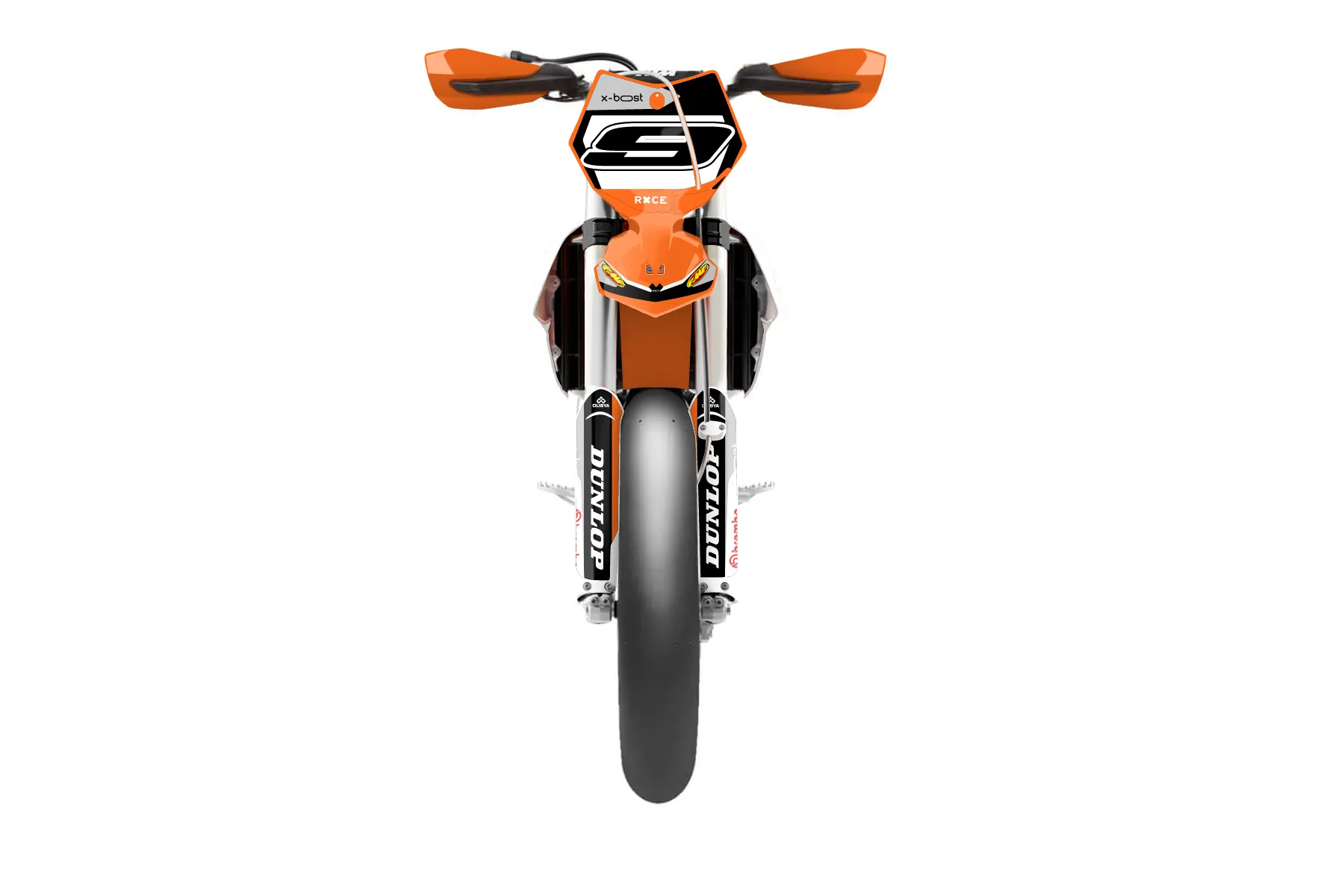 «Whip» — готовый комплект графики серии Flow для KTM Supermoto KTM SMR 450 2013. В комплекте: графика на бак и боковые облицовки, крылья (переднее и заднее), передний щиток, номерные таблички, защита вилки. Материал: ПВХ-винил 80 мкр с холодной ламинацией 300 мкр, общая толщина 380 мкр; покрытие глянцевое или матовое на выбор. Устойчив к UV-излучению, воде, бензину и мойке высокого давления. Клей акриловый на сольвентной основе — постоянный, для гибких пластиков. На простых поверхностях монтируется без нагрева; для сложных изгибов рекомендуем фен. Этот пресет можно заказать как есть или взять за основу в конструкторе: поменять цвета, добавить стартовый номер и свой бренд. Производство — 3–5 рабочих дней, доставка по России СДЭКом или Почтой, по СНГ — курьерскими службами.