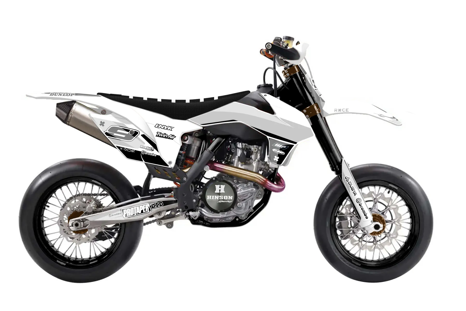 «Worx» — готовый комплект графики серии Flow для KTM Supermoto KTM SMR 450 2013. В комплекте: графика на бак и боковые облицовки, крылья (переднее и заднее), передний щиток, номерные таблички, защита вилки. Материал: ПВХ-винил 80 мкр с холодной ламинацией 300 мкр, общая толщина 380 мкр; покрытие глянцевое или матовое на выбор. Устойчив к UV-излучению, воде, бензину и мойке высокого давления. Клей акриловый на сольвентной основе — постоянный, для гибких пластиков. На простых поверхностях монтируется без нагрева; для сложных изгибов рекомендуем фен. Этот пресет можно заказать как есть или взять за основу в конструкторе: поменять цвета, добавить стартовый номер и свой бренд. Производство — 3–5 рабочих дней, доставка по России СДЭКом или Почтой, по СНГ — курьерскими службами.