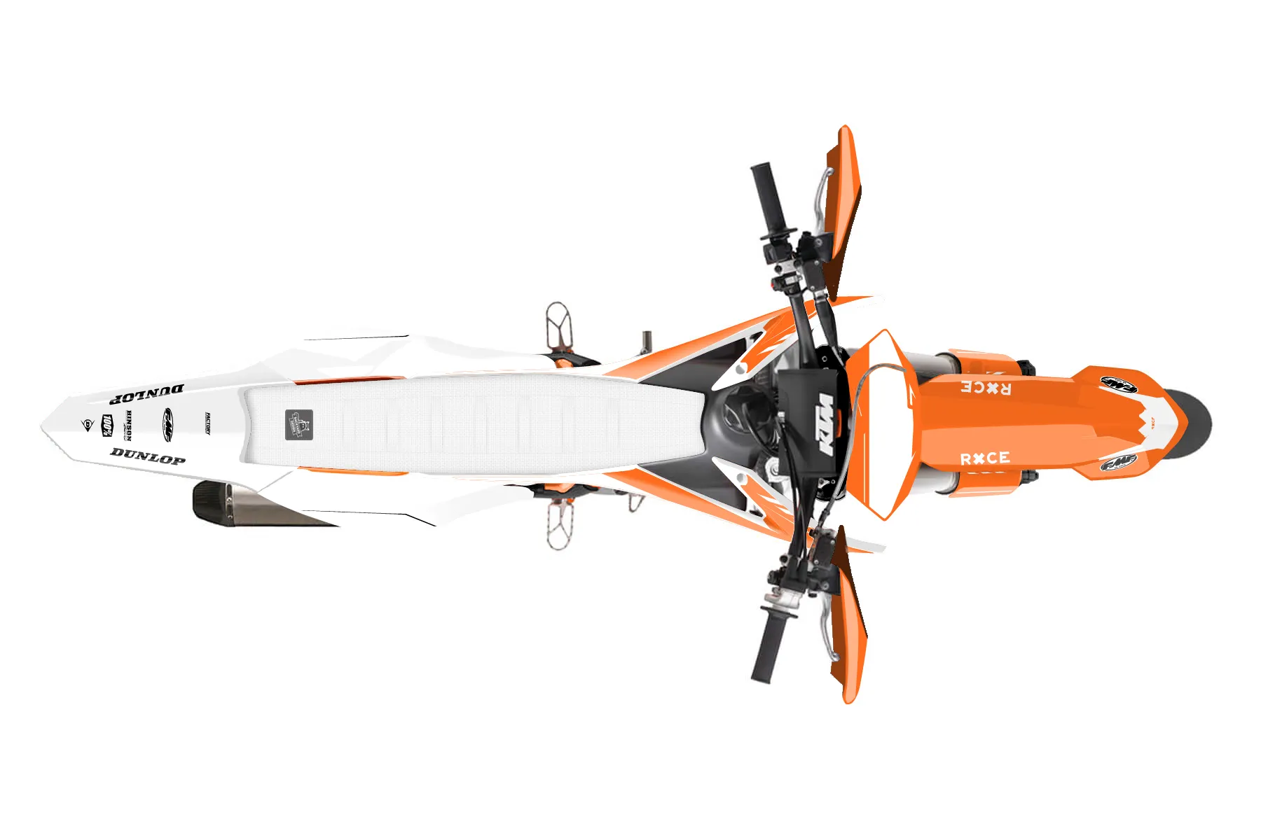 «Bones» — готовый комплект графики серии Maverick для KTM Supermoto KTM SMR 450 2013. В комплекте: графика на бак и боковые облицовки, крылья (переднее и заднее), передний щиток, номерные таблички, защита вилки. Материал: ПВХ-винил 80 мкр с холодной ламинацией 300 мкр, общая толщина 380 мкр; покрытие глянцевое или матовое на выбор. Устойчив к UV-излучению, воде, бензину и мойке высокого давления. Клей акриловый на сольвентной основе — постоянный, для гибких пластиков. На простых поверхностях монтируется без нагрева; для сложных изгибов рекомендуем фен. Этот пресет можно заказать как есть или взять за основу в конструкторе: поменять цвета, добавить стартовый номер и свой бренд. Производство — 3–5 рабочих дней, доставка по России СДЭКом или Почтой, по СНГ — курьерскими службами.