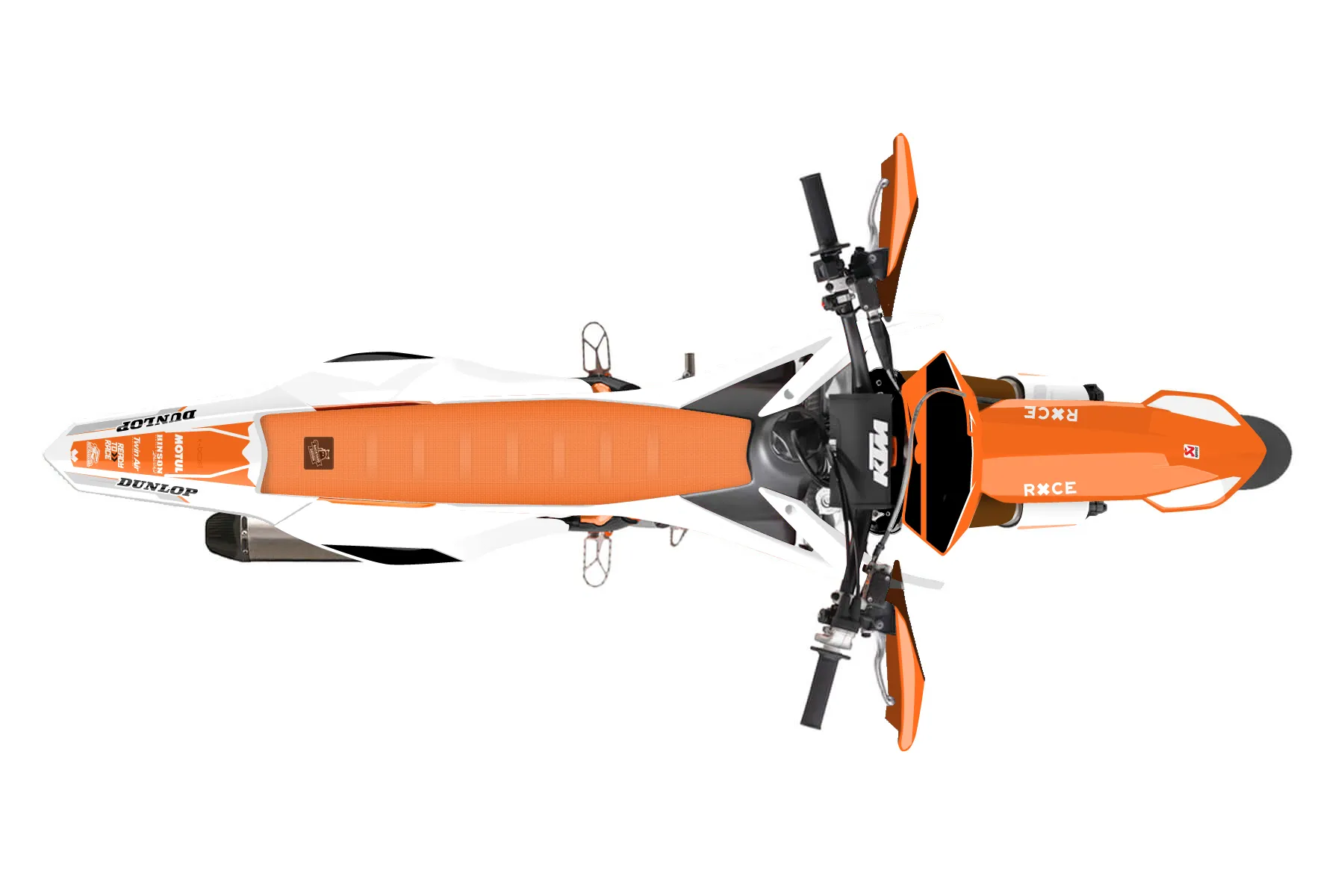 «Chill» — готовый комплект графики серии Maverick для KTM Supermoto KTM SMR 450 2013. В комплекте: графика на бак и боковые облицовки, крылья (переднее и заднее), передний щиток, номерные таблички, защита вилки. Материал: ПВХ-винил 80 мкр с холодной ламинацией 300 мкр, общая толщина 380 мкр; покрытие глянцевое или матовое на выбор. Устойчив к UV-излучению, воде, бензину и мойке высокого давления. Клей акриловый на сольвентной основе — постоянный, для гибких пластиков. На простых поверхностях монтируется без нагрева; для сложных изгибов рекомендуем фен. Этот пресет можно заказать как есть или взять за основу в конструкторе: поменять цвета, добавить стартовый номер и свой бренд. Производство — 3–5 рабочих дней, доставка по России СДЭКом или Почтой, по СНГ — курьерскими службами.