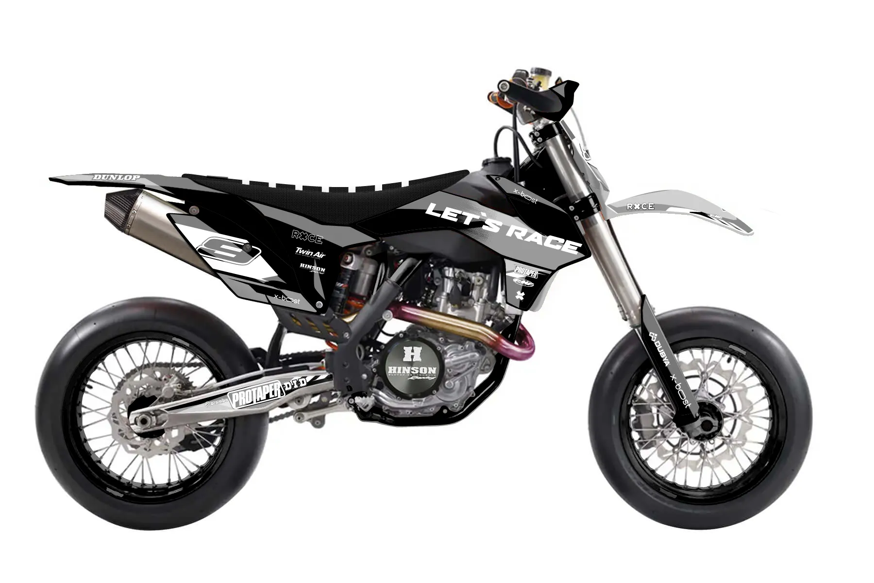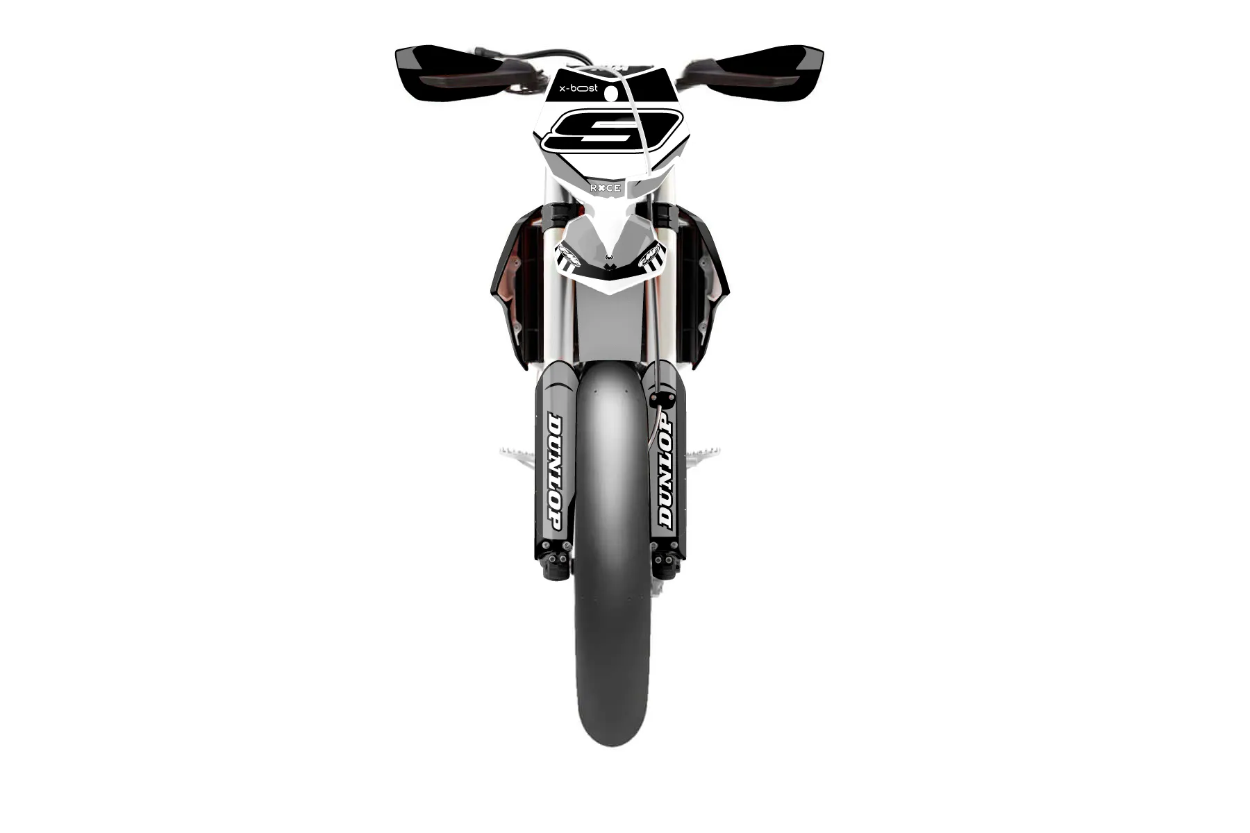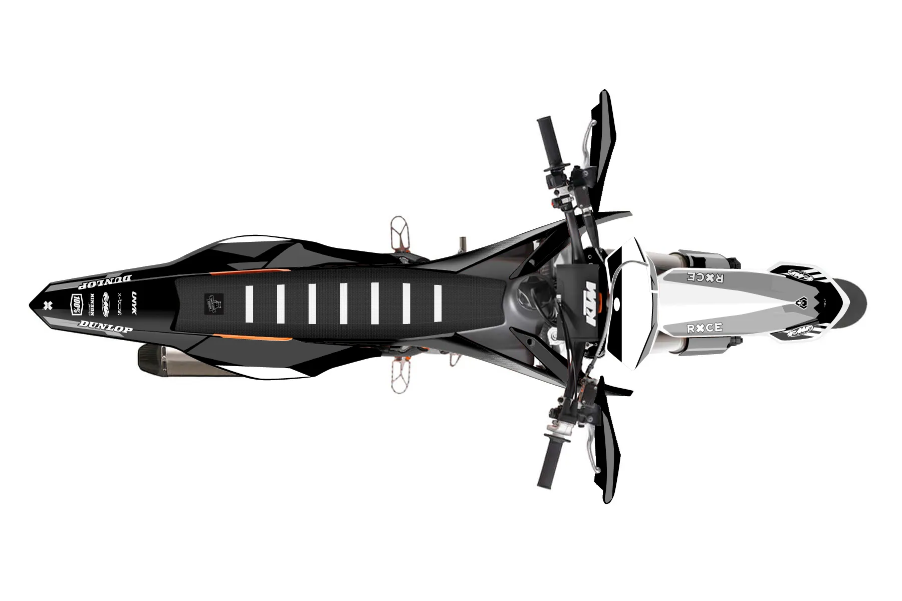 «DeCore» — готовый комплект графики серии Maverick для KTM Supermoto KTM SMR 450 2013. В комплекте: графика на бак и боковые облицовки, крылья (переднее и заднее), передний щиток, номерные таблички, защита вилки. Материал: ПВХ-винил 80 мкр с холодной ламинацией 300 мкр, общая толщина 380 мкр; покрытие глянцевое или матовое на выбор. Устойчив к UV-излучению, воде, бензину и мойке высокого давления. Клей акриловый на сольвентной основе — постоянный, для гибких пластиков. На простых поверхностях монтируется без нагрева; для сложных изгибов рекомендуем фен. Этот пресет можно заказать как есть или взять за основу в конструкторе: поменять цвета, добавить стартовый номер и свой бренд. Производство — 3–5 рабочих дней, доставка по России СДЭКом или Почтой, по СНГ — курьерскими службами.