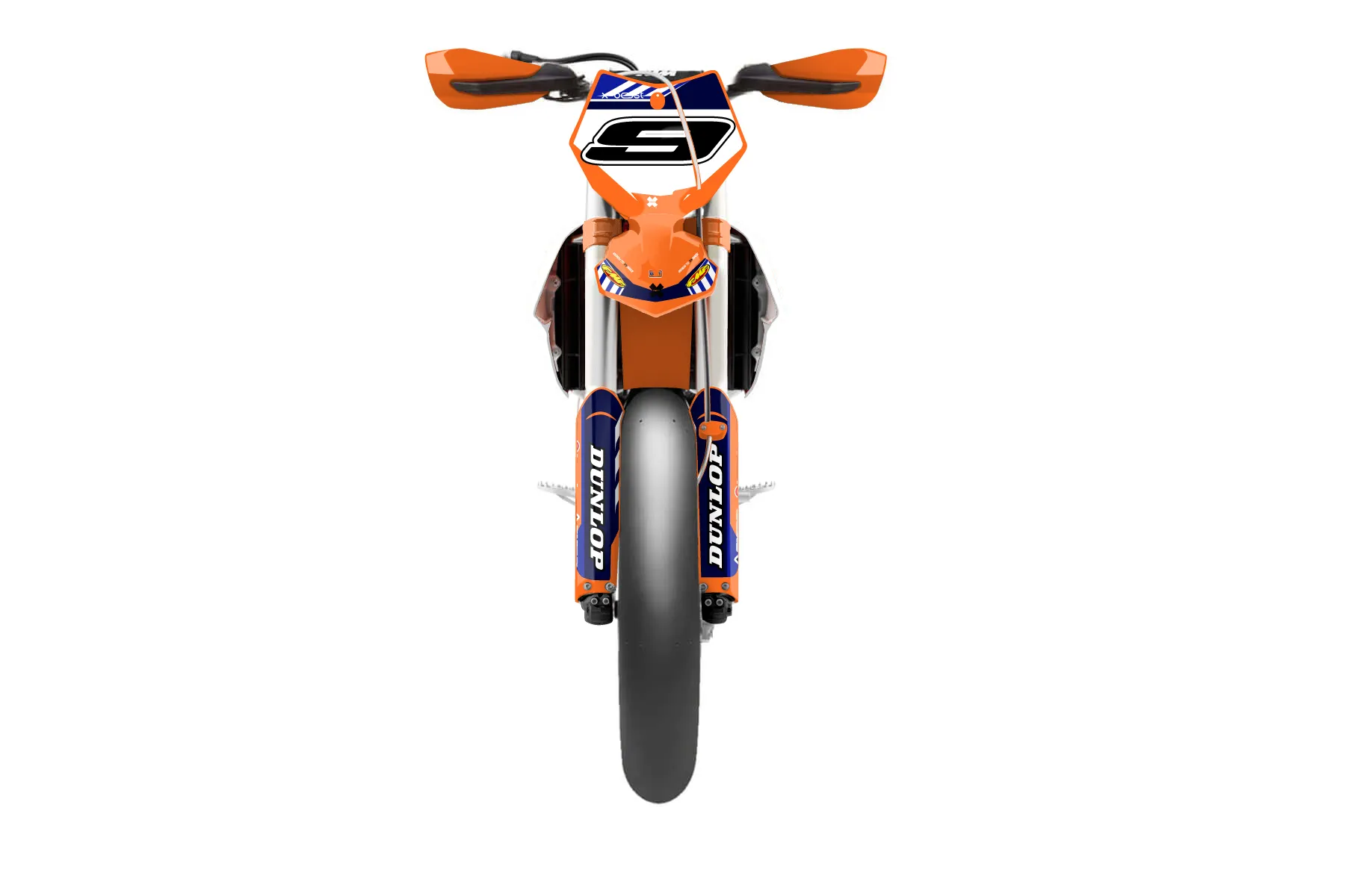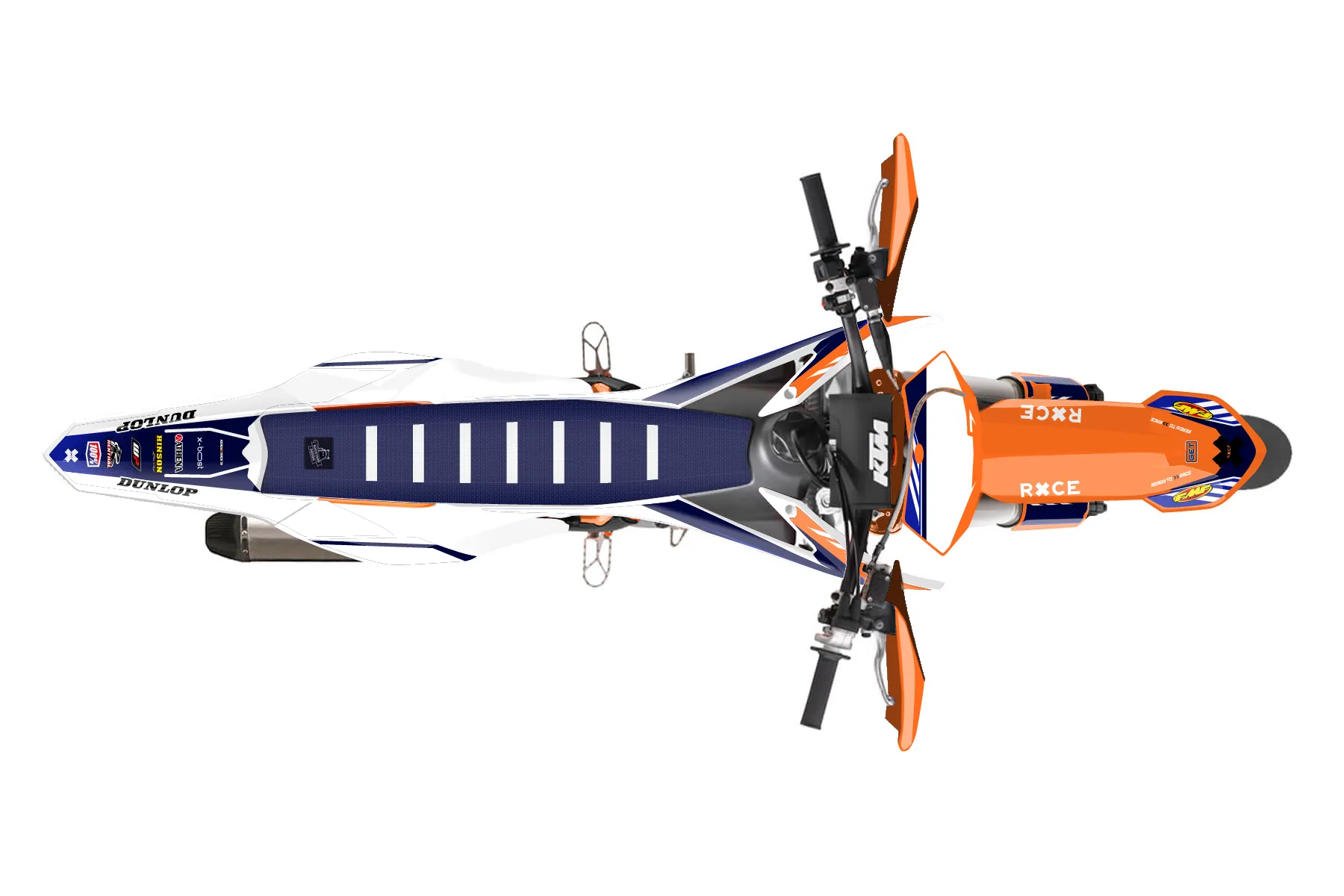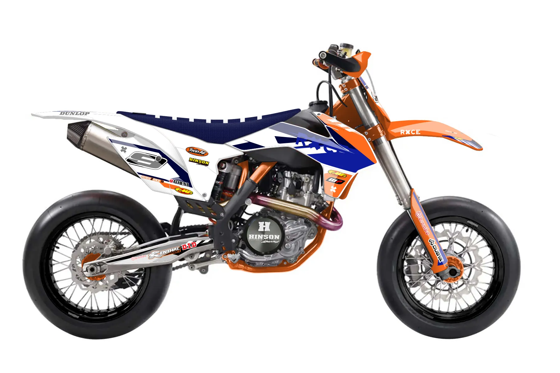 «Fuzion» — готовый комплект графики серии Maverick для KTM Supermoto KTM SMR 450 2013. В комплекте: графика на бак и боковые облицовки, крылья (переднее и заднее), передний щиток, номерные таблички, защита вилки. Материал: ПВХ-винил 80 мкр с холодной ламинацией 300 мкр, общая толщина 380 мкр; покрытие глянцевое или матовое на выбор. Устойчив к UV-излучению, воде, бензину и мойке высокого давления. Клей акриловый на сольвентной основе — постоянный, для гибких пластиков. На простых поверхностях монтируется без нагрева; для сложных изгибов рекомендуем фен. Этот пресет можно заказать как есть или взять за основу в конструкторе: поменять цвета, добавить стартовый номер и свой бренд. Производство — 3–5 рабочих дней, доставка по России СДЭКом или Почтой, по СНГ — курьерскими службами.