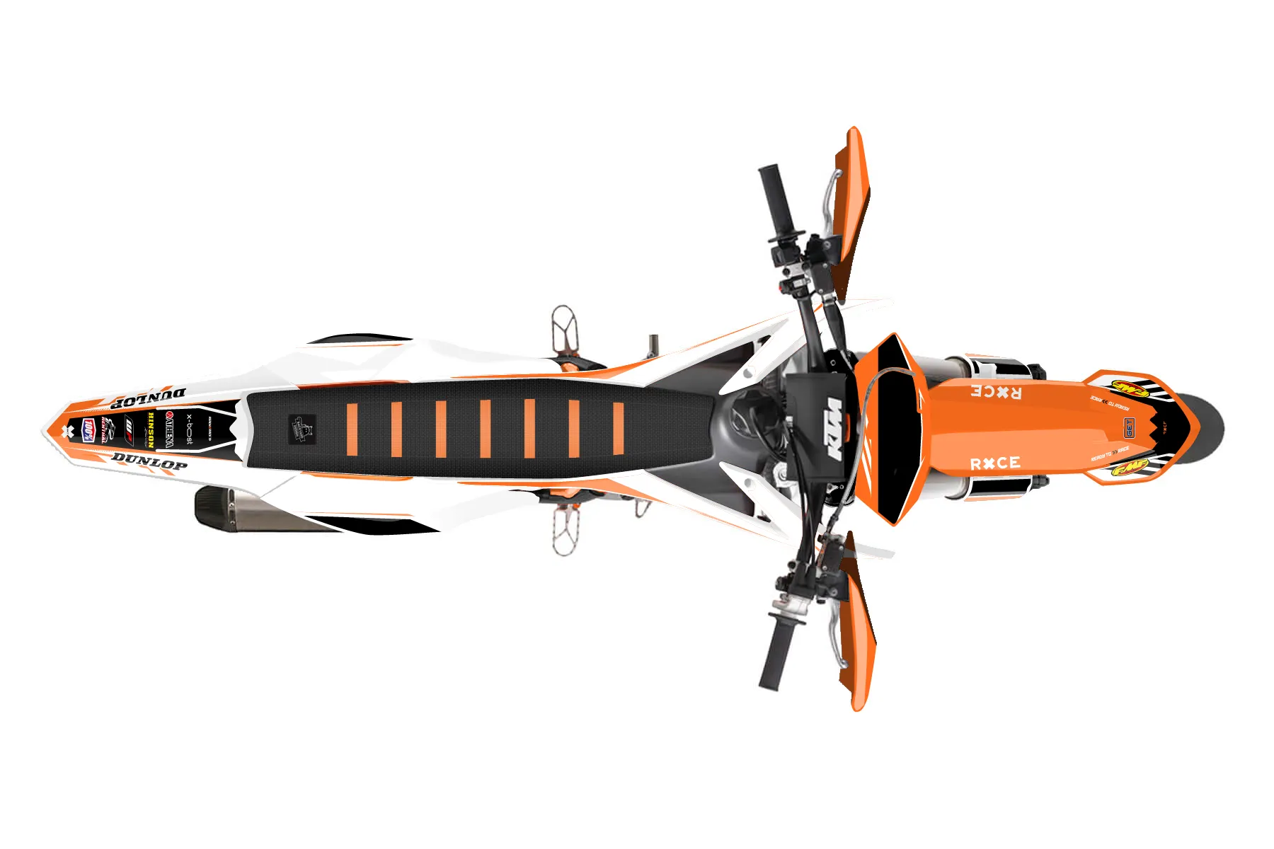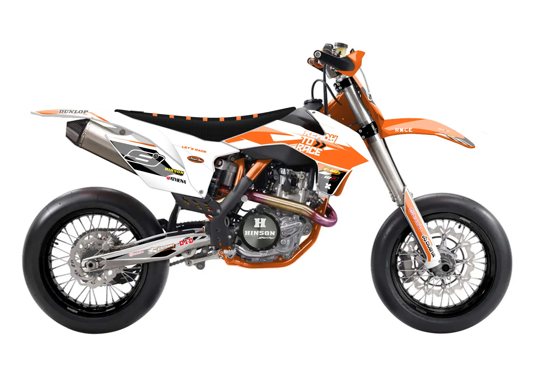 «GoPro» — готовый комплект графики серии Maverick для KTM Supermoto KTM SMR 450 2013. В комплекте: графика на бак и боковые облицовки, крылья (переднее и заднее), передний щиток, номерные таблички, защита вилки. Материал: ПВХ-винил 80 мкр с холодной ламинацией 300 мкр, общая толщина 380 мкр; покрытие глянцевое или матовое на выбор. Устойчив к UV-излучению, воде, бензину и мойке высокого давления. Клей акриловый на сольвентной основе — постоянный, для гибких пластиков. На простых поверхностях монтируется без нагрева; для сложных изгибов рекомендуем фен. Этот пресет можно заказать как есть или взять за основу в конструкторе: поменять цвета, добавить стартовый номер и свой бренд. Производство — 3–5 рабочих дней, доставка по России СДЭКом или Почтой, по СНГ — курьерскими службами.