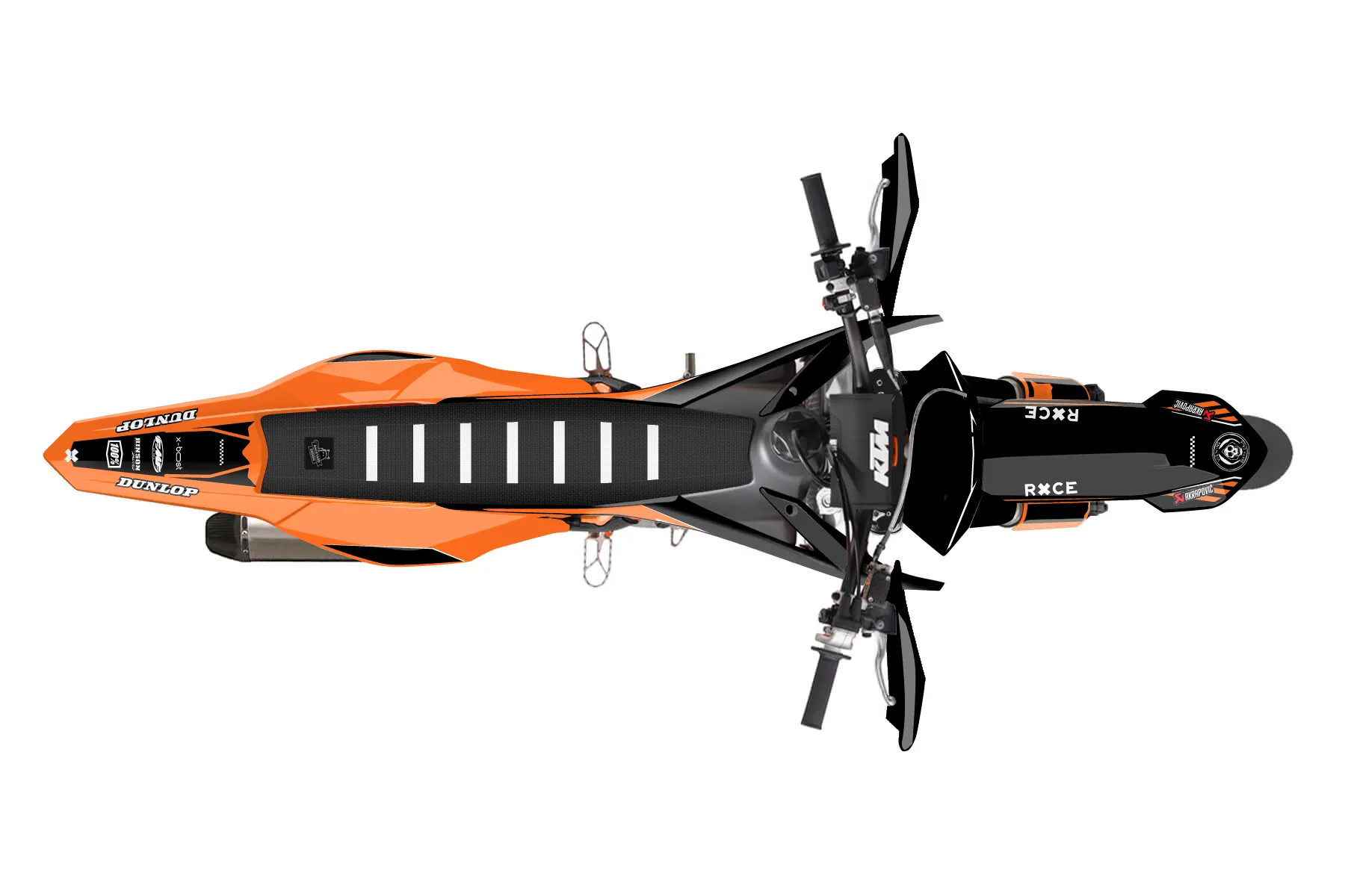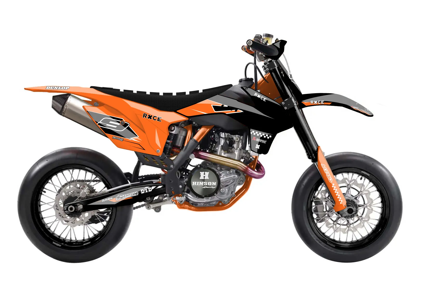 «Mental» — готовый комплект графики серии Maverick для KTM Supermoto KTM SMR 450 2013. В комплекте: графика на бак и боковые облицовки, крылья (переднее и заднее), передний щиток, номерные таблички, защита вилки. Материал: ПВХ-винил 80 мкр с холодной ламинацией 300 мкр, общая толщина 380 мкр; покрытие глянцевое или матовое на выбор. Устойчив к UV-излучению, воде, бензину и мойке высокого давления. Клей акриловый на сольвентной основе — постоянный, для гибких пластиков. На простых поверхностях монтируется без нагрева; для сложных изгибов рекомендуем фен. Этот пресет можно заказать как есть или взять за основу в конструкторе: поменять цвета, добавить стартовый номер и свой бренд. Производство — 3–5 рабочих дней, доставка по России СДЭКом или Почтой, по СНГ — курьерскими службами.