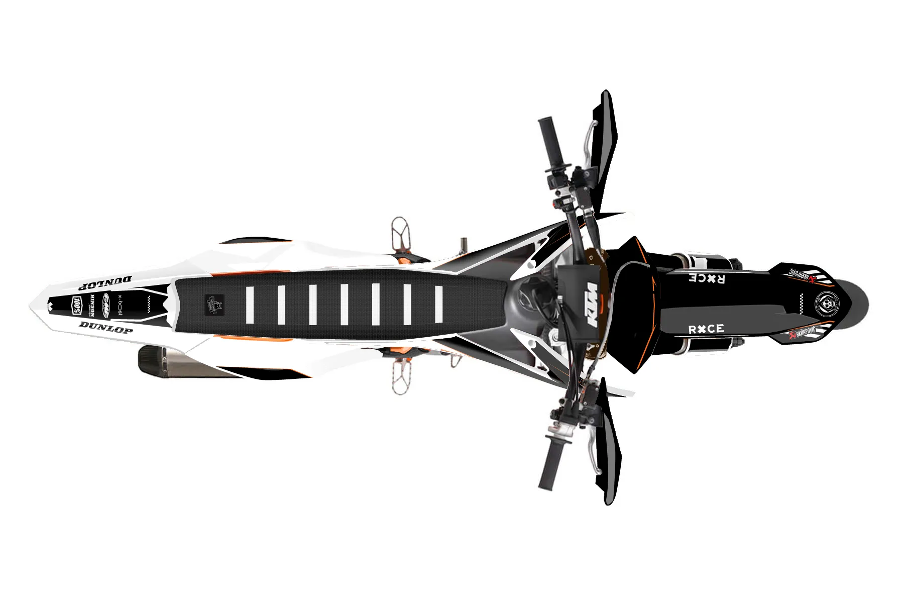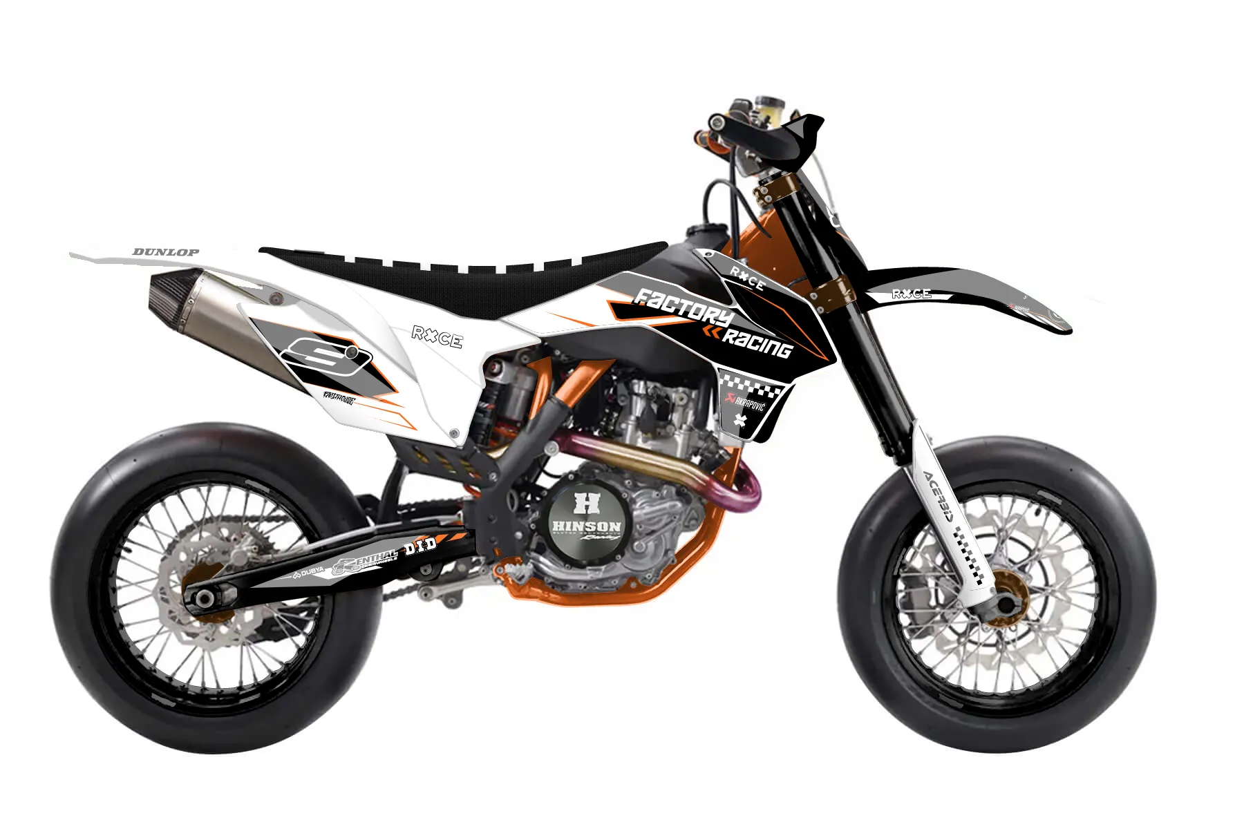«Sick» — готовый комплект графики серии Maverick для KTM Supermoto KTM SMR 450 2013. В комплекте: графика на бак и боковые облицовки, крылья (переднее и заднее), передний щиток, номерные таблички, защита вилки. Материал: ПВХ-винил 80 мкр с холодной ламинацией 300 мкр, общая толщина 380 мкр; покрытие глянцевое или матовое на выбор. Устойчив к UV-излучению, воде, бензину и мойке высокого давления. Клей акриловый на сольвентной основе — постоянный, для гибких пластиков. На простых поверхностях монтируется без нагрева; для сложных изгибов рекомендуем фен. Этот пресет можно заказать как есть или взять за основу в конструкторе: поменять цвета, добавить стартовый номер и свой бренд. Производство — 3–5 рабочих дней, доставка по России СДЭКом или Почтой, по СНГ — курьерскими службами.