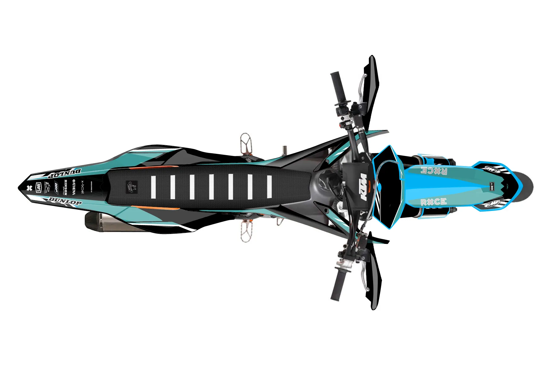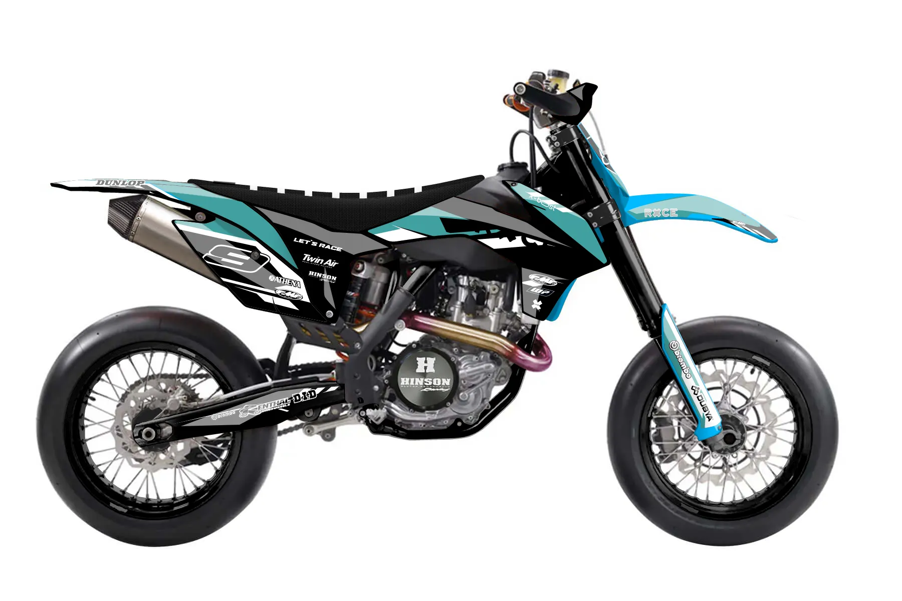 «Swirl» — готовый комплект графики серии Maverick для KTM Supermoto KTM SMR 450 2013. В комплекте: графика на бак и боковые облицовки, крылья (переднее и заднее), передний щиток, номерные таблички, защита вилки. Материал: ПВХ-винил 80 мкр с холодной ламинацией 300 мкр, общая толщина 380 мкр; покрытие глянцевое или матовое на выбор. Устойчив к UV-излучению, воде, бензину и мойке высокого давления. Клей акриловый на сольвентной основе — постоянный, для гибких пластиков. На простых поверхностях монтируется без нагрева; для сложных изгибов рекомендуем фен. Этот пресет можно заказать как есть или взять за основу в конструкторе: поменять цвета, добавить стартовый номер и свой бренд. Производство — 3–5 рабочих дней, доставка по России СДЭКом или Почтой, по СНГ — курьерскими службами.
