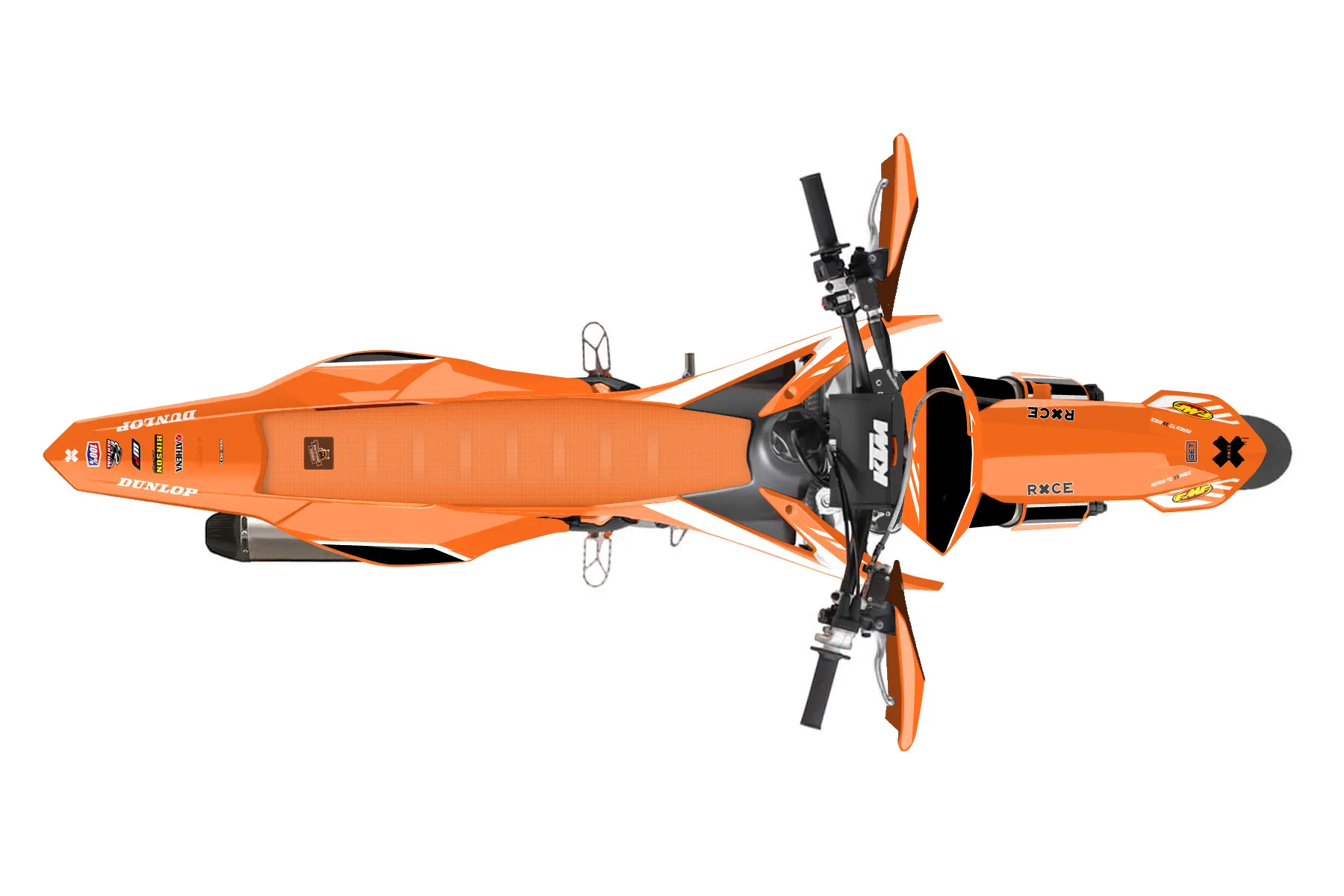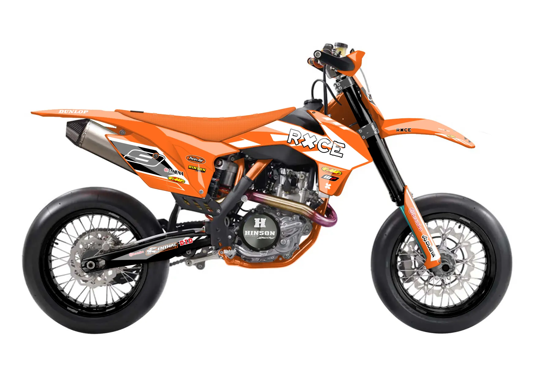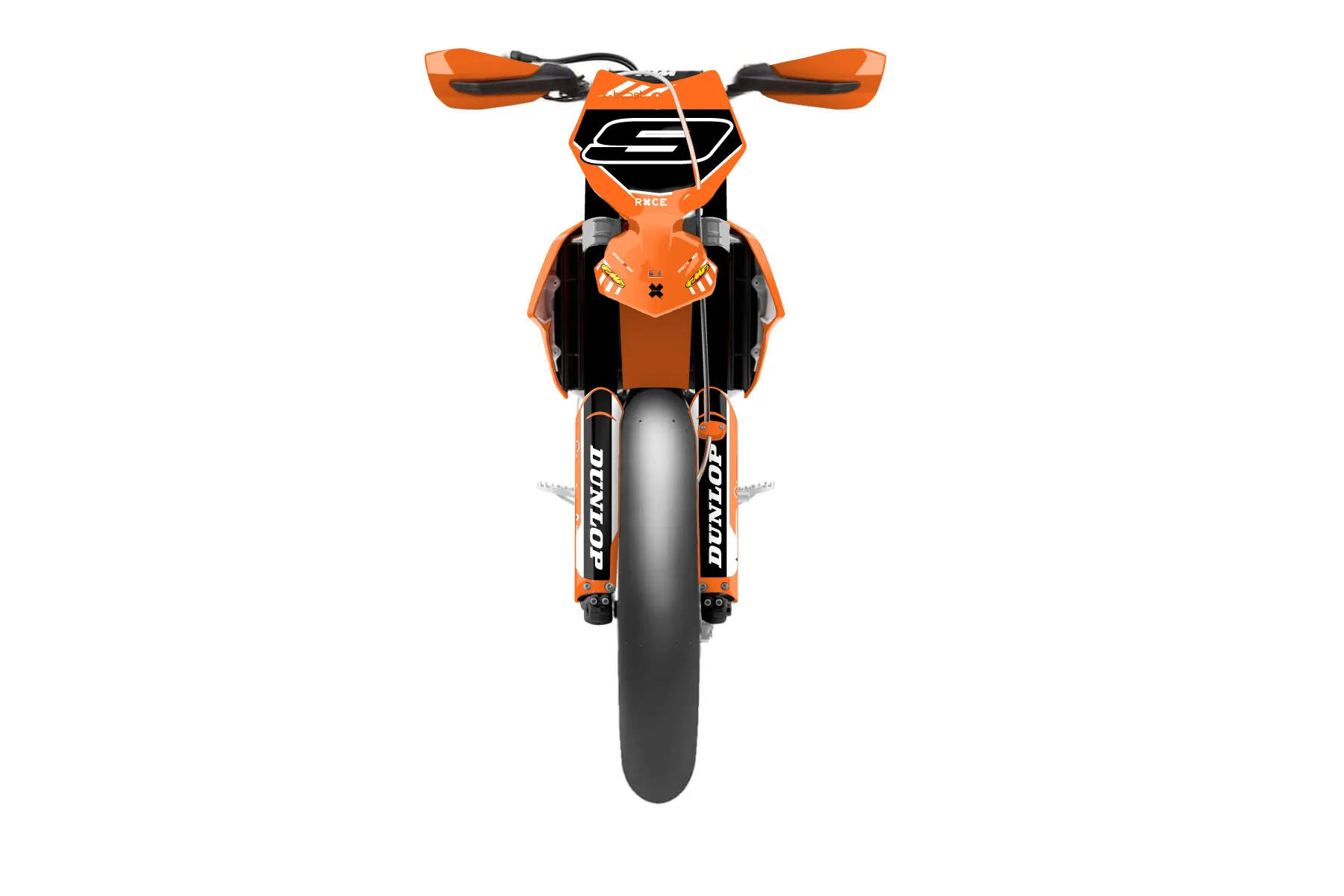 «Train» — готовый комплект графики серии Maverick для KTM Supermoto KTM SMR 450 2013. В комплекте: графика на бак и боковые облицовки, крылья (переднее и заднее), передний щиток, номерные таблички, защита вилки. Материал: ПВХ-винил 80 мкр с холодной ламинацией 300 мкр, общая толщина 380 мкр; покрытие глянцевое или матовое на выбор. Устойчив к UV-излучению, воде, бензину и мойке высокого давления. Клей акриловый на сольвентной основе — постоянный, для гибких пластиков. На простых поверхностях монтируется без нагрева; для сложных изгибов рекомендуем фен. Этот пресет можно заказать как есть или взять за основу в конструкторе: поменять цвета, добавить стартовый номер и свой бренд. Производство — 3–5 рабочих дней, доставка по России СДЭКом или Почтой, по СНГ — курьерскими службами.