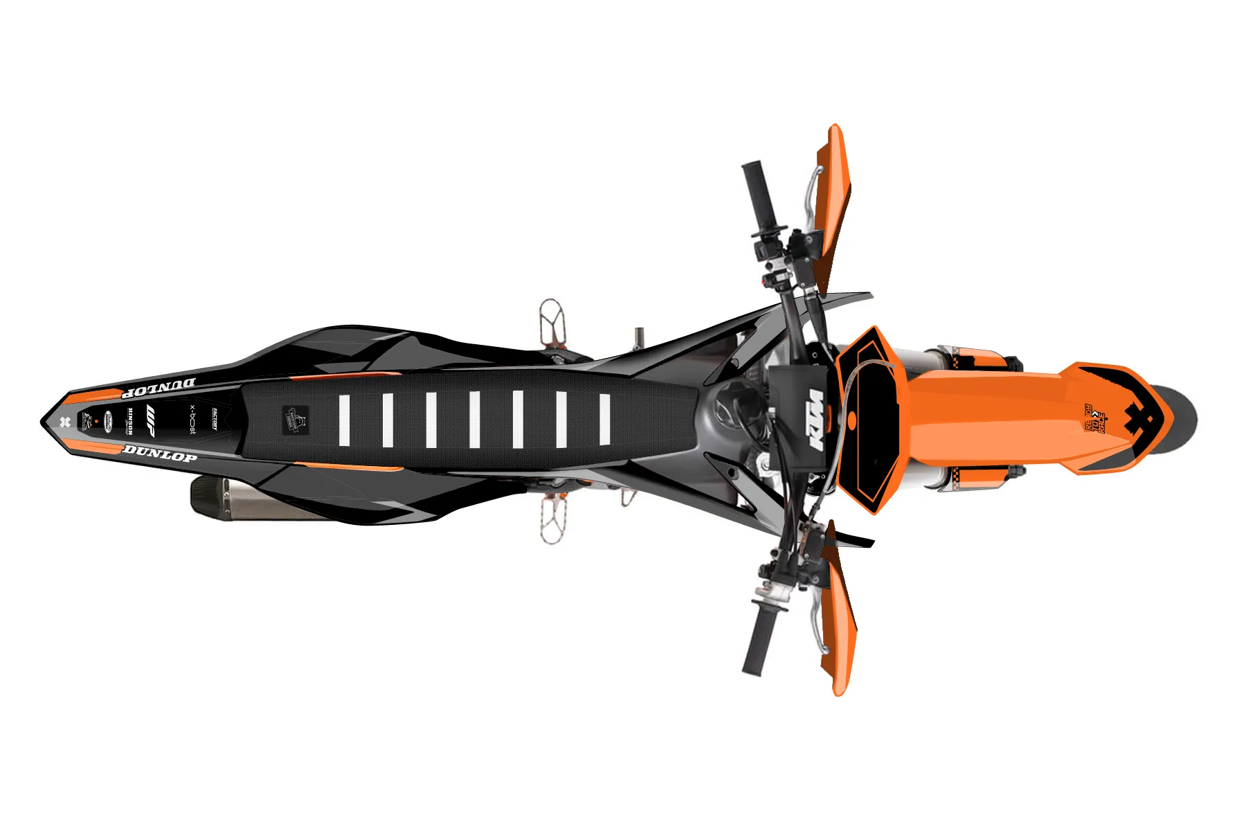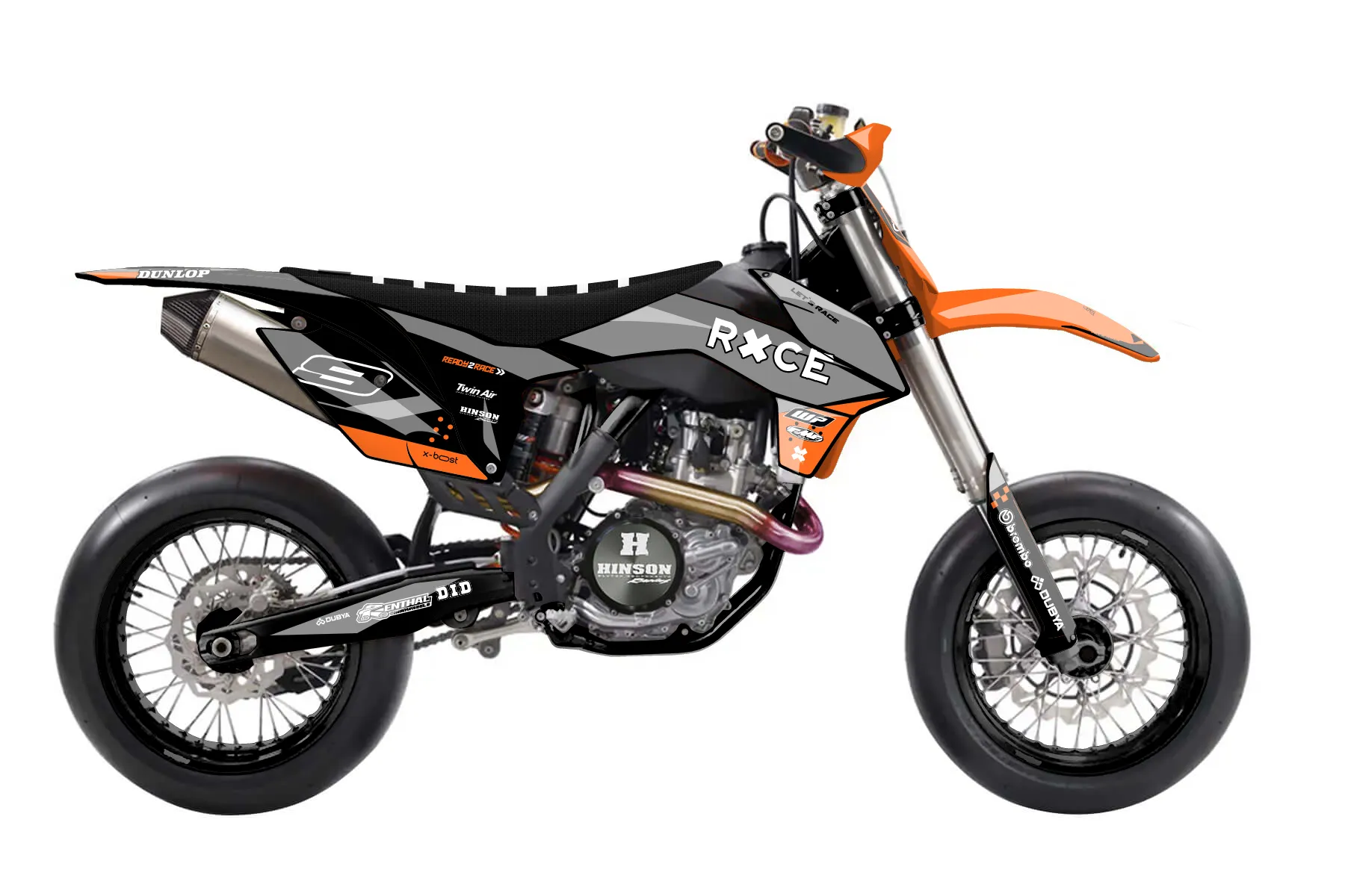 «Cape» — готовый комплект графики серии Staple для KTM Supermoto KTM SMR 450 2013. В комплекте: графика на бак и боковые облицовки, крылья (переднее и заднее), передний щиток, номерные таблички, защита вилки. Материал: ПВХ-винил 80 мкр с холодной ламинацией 300 мкр, общая толщина 380 мкр; покрытие глянцевое или матовое на выбор. Устойчив к UV-излучению, воде, бензину и мойке высокого давления. Клей акриловый на сольвентной основе — постоянный, для гибких пластиков. На простых поверхностях монтируется без нагрева; для сложных изгибов рекомендуем фен. Этот пресет можно заказать как есть или взять за основу в конструкторе: поменять цвета, добавить стартовый номер и свой бренд. Производство — 3–5 рабочих дней, доставка по России СДЭКом или Почтой, по СНГ — курьерскими службами.
