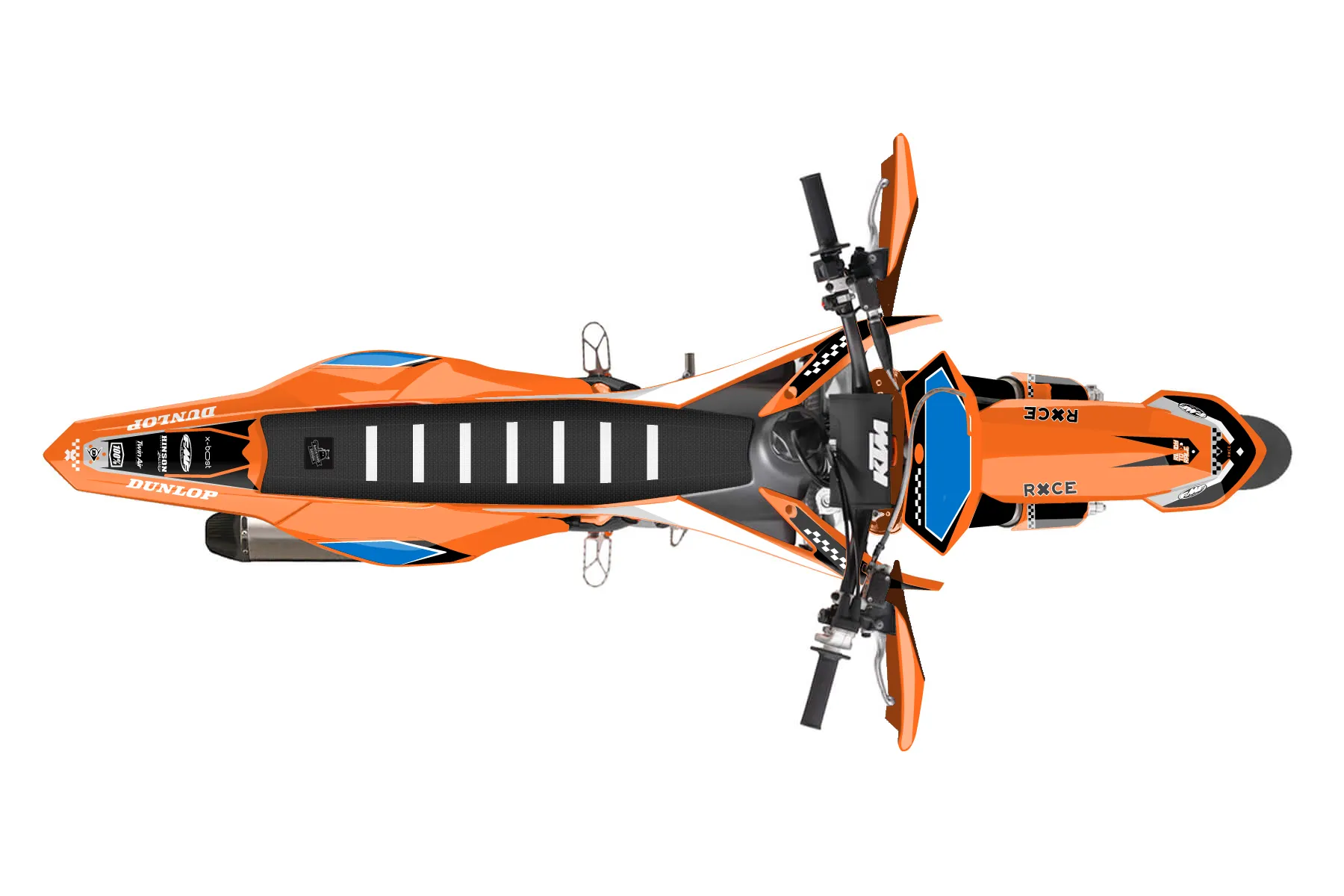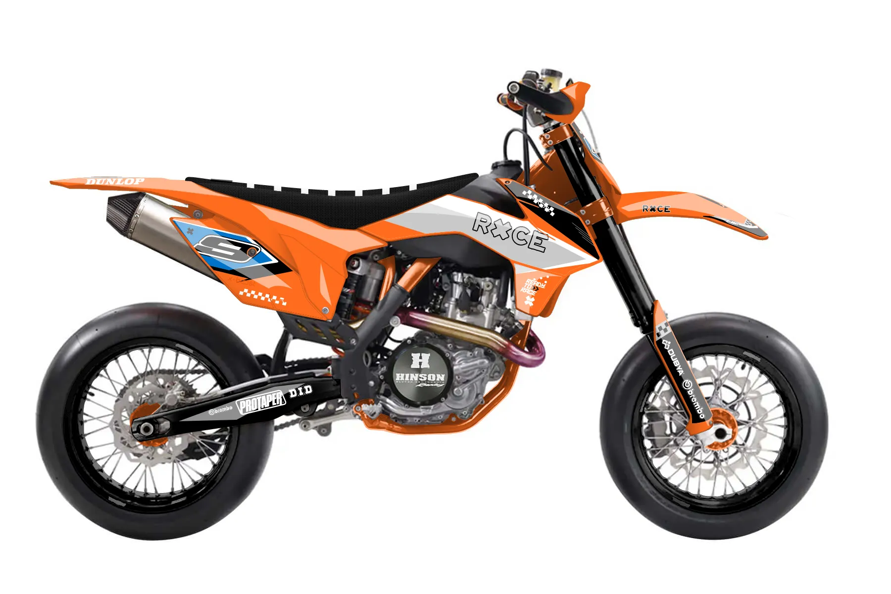 «Clean» — готовый комплект графики серии Staple для KTM Supermoto KTM SMR 450 2013. В комплекте: графика на бак и боковые облицовки, крылья (переднее и заднее), передний щиток, номерные таблички, защита вилки. Материал: ПВХ-винил 80 мкр с холодной ламинацией 300 мкр, общая толщина 380 мкр; покрытие глянцевое или матовое на выбор. Устойчив к UV-излучению, воде, бензину и мойке высокого давления. Клей акриловый на сольвентной основе — постоянный, для гибких пластиков. На простых поверхностях монтируется без нагрева; для сложных изгибов рекомендуем фен. Этот пресет можно заказать как есть или взять за основу в конструкторе: поменять цвета, добавить стартовый номер и свой бренд. Производство — 3–5 рабочих дней, доставка по России СДЭКом или Почтой, по СНГ — курьерскими службами.