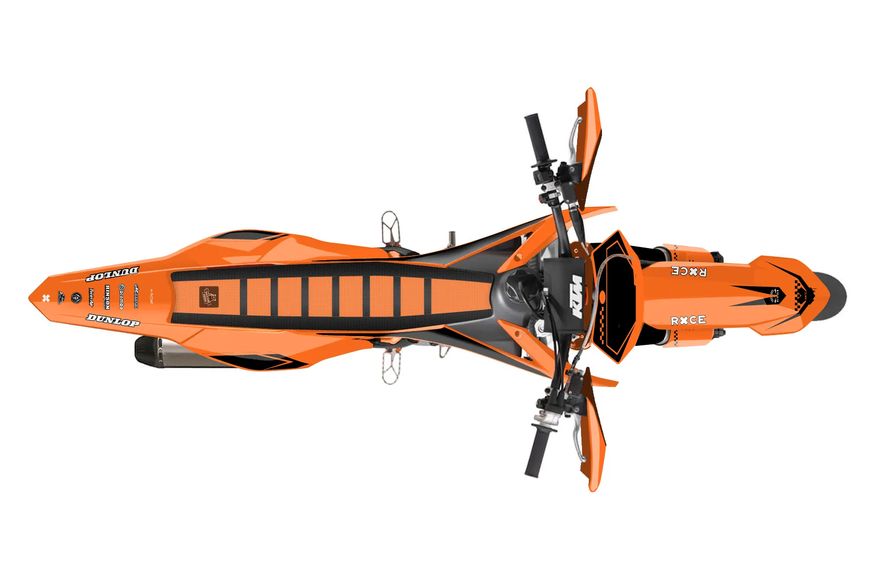 «Direction» — готовый комплект графики серии Staple для KTM Supermoto KTM SMR 450 2013. В комплекте: графика на бак и боковые облицовки, крылья (переднее и заднее), передний щиток, номерные таблички, защита вилки. Материал: ПВХ-винил 80 мкр с холодной ламинацией 300 мкр, общая толщина 380 мкр; покрытие глянцевое или матовое на выбор. Устойчив к UV-излучению, воде, бензину и мойке высокого давления. Клей акриловый на сольвентной основе — постоянный, для гибких пластиков. На простых поверхностях монтируется без нагрева; для сложных изгибов рекомендуем фен. Этот пресет можно заказать как есть или взять за основу в конструкторе: поменять цвета, добавить стартовый номер и свой бренд. Производство — 3–5 рабочих дней, доставка по России СДЭКом или Почтой, по СНГ — курьерскими службами.