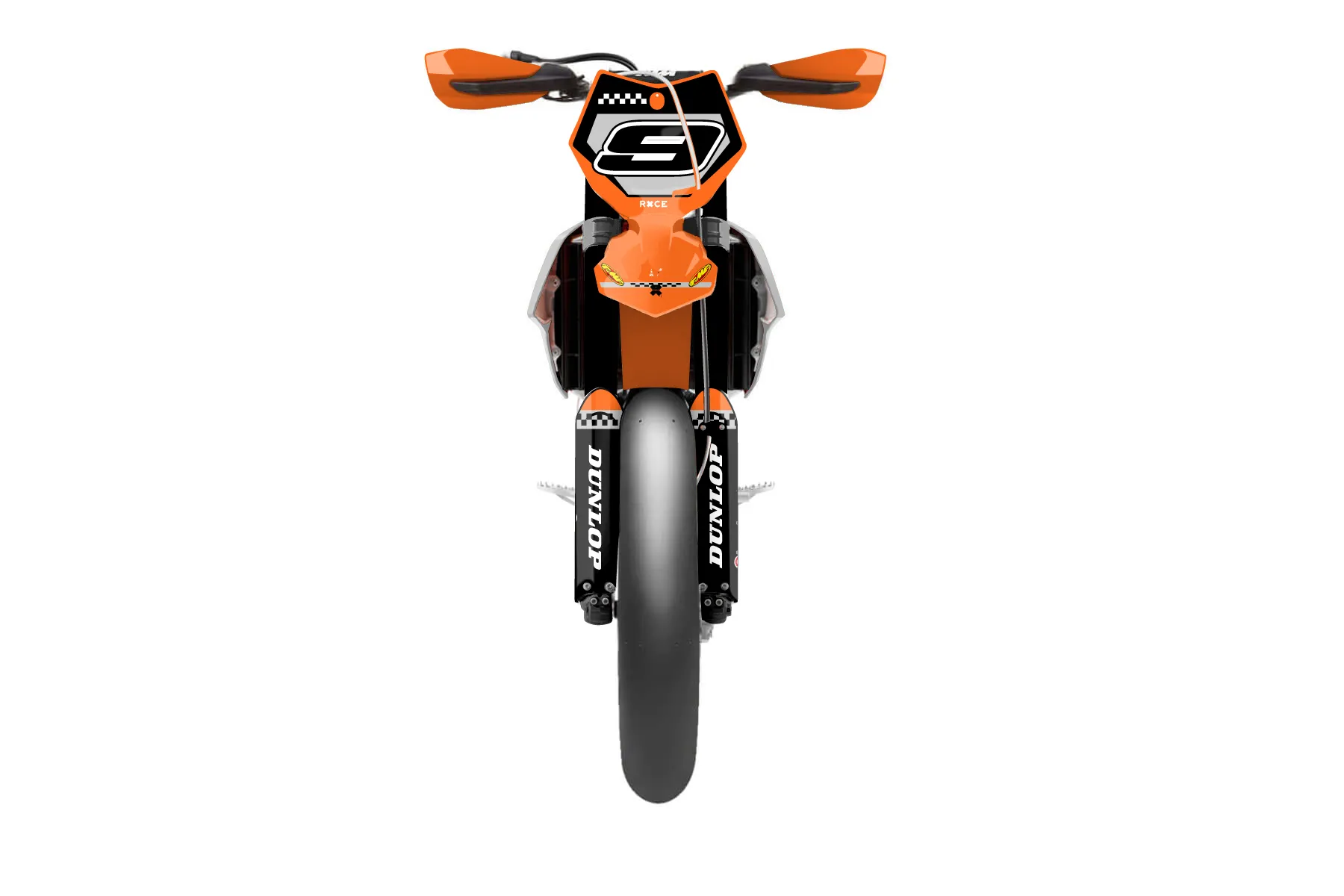 «Draft» — готовый комплект графики серии Staple для KTM Supermoto KTM SMR 450 2013. В комплекте: графика на бак и боковые облицовки, крылья (переднее и заднее), передний щиток, номерные таблички, защита вилки. Материал: ПВХ-винил 80 мкр с холодной ламинацией 300 мкр, общая толщина 380 мкр; покрытие глянцевое или матовое на выбор. Устойчив к UV-излучению, воде, бензину и мойке высокого давления. Клей акриловый на сольвентной основе — постоянный, для гибких пластиков. На простых поверхностях монтируется без нагрева; для сложных изгибов рекомендуем фен. Этот пресет можно заказать как есть или взять за основу в конструкторе: поменять цвета, добавить стартовый номер и свой бренд. Производство — 3–5 рабочих дней, доставка по России СДЭКом или Почтой, по СНГ — курьерскими службами.