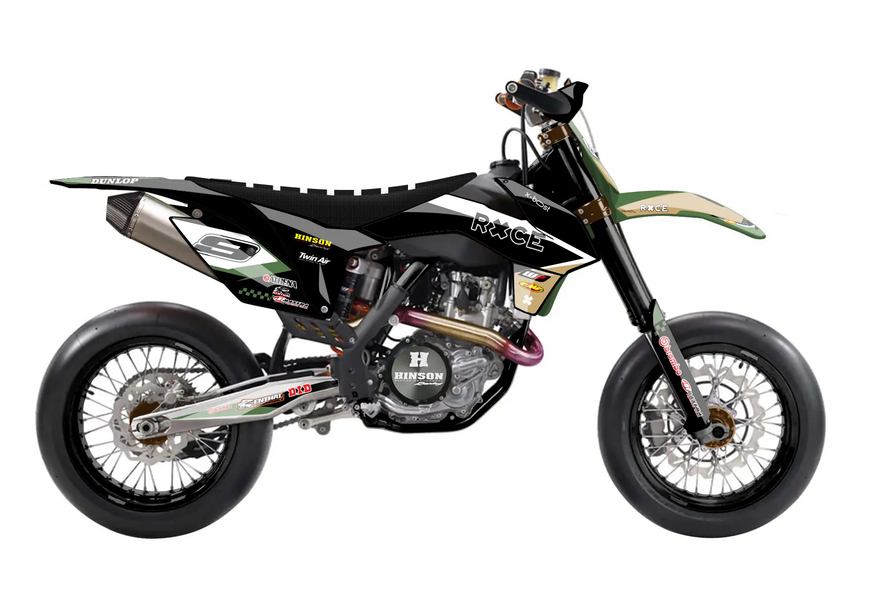 «Dub» — готовый комплект графики серии Staple для KTM Supermoto KTM SMR 450 2013. В комплекте: графика на бак и боковые облицовки, крылья (переднее и заднее), передний щиток, номерные таблички, защита вилки. Материал: ПВХ-винил 80 мкр с холодной ламинацией 300 мкр, общая толщина 380 мкр; покрытие глянцевое или матовое на выбор. Устойчив к UV-излучению, воде, бензину и мойке высокого давления. Клей акриловый на сольвентной основе — постоянный, для гибких пластиков. На простых поверхностях монтируется без нагрева; для сложных изгибов рекомендуем фен. Этот пресет можно заказать как есть или взять за основу в конструкторе: поменять цвета, добавить стартовый номер и свой бренд. Производство — 3–5 рабочих дней, доставка по России СДЭКом или Почтой, по СНГ — курьерскими службами.