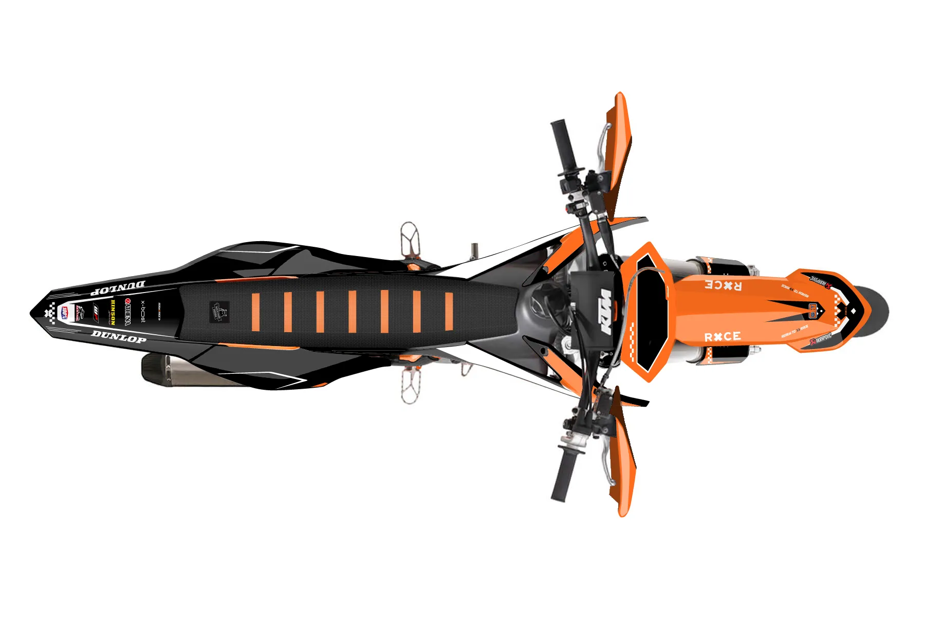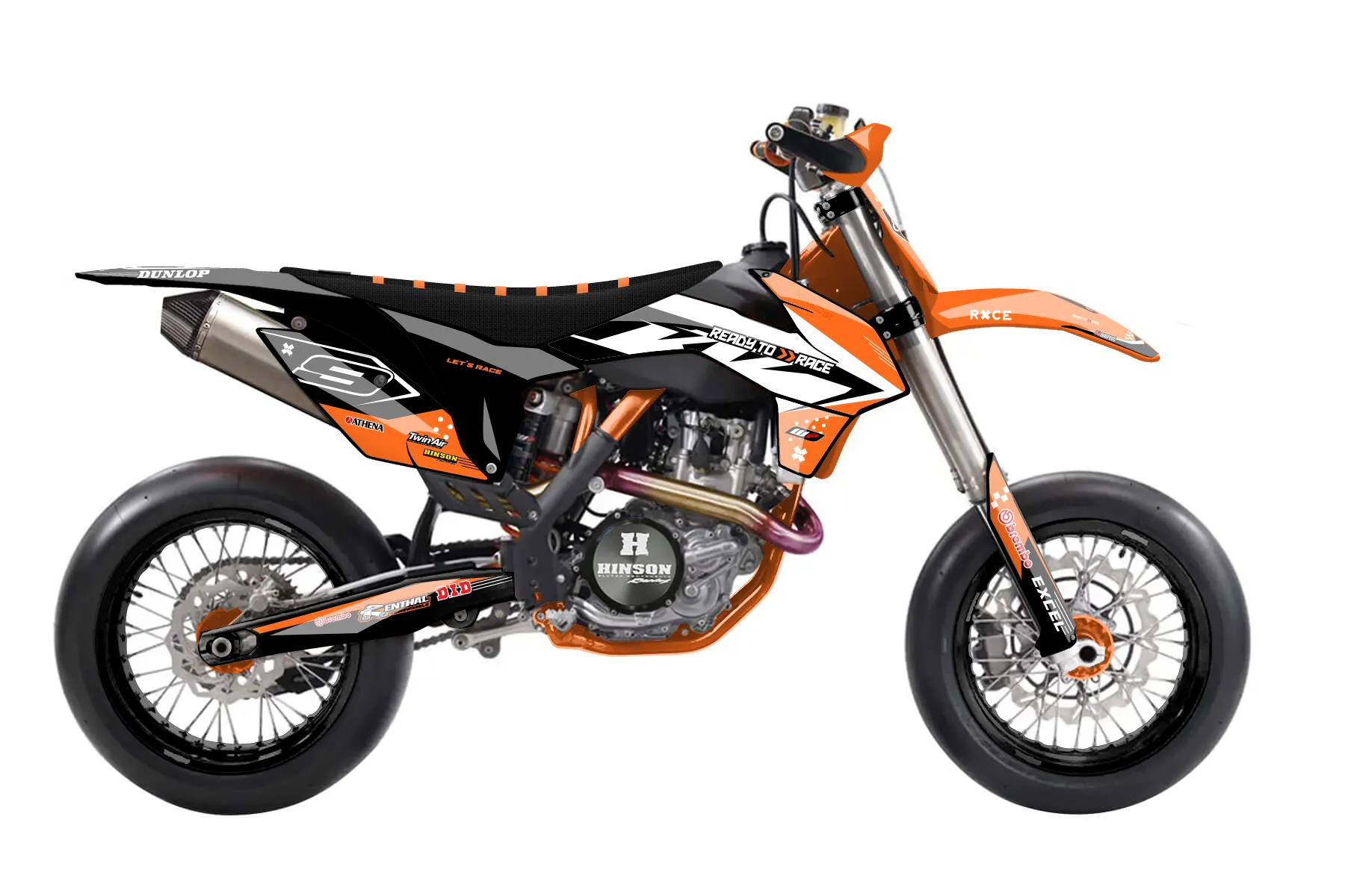 «Leak» — готовый комплект графики серии Staple для KTM Supermoto KTM SMR 450 2013. В комплекте: графика на бак и боковые облицовки, крылья (переднее и заднее), передний щиток, номерные таблички, защита вилки. Материал: ПВХ-винил 80 мкр с холодной ламинацией 300 мкр, общая толщина 380 мкр; покрытие глянцевое или матовое на выбор. Устойчив к UV-излучению, воде, бензину и мойке высокого давления. Клей акриловый на сольвентной основе — постоянный, для гибких пластиков. На простых поверхностях монтируется без нагрева; для сложных изгибов рекомендуем фен. Этот пресет можно заказать как есть или взять за основу в конструкторе: поменять цвета, добавить стартовый номер и свой бренд. Производство — 3–5 рабочих дней, доставка по России СДЭКом или Почтой, по СНГ — курьерскими службами.
