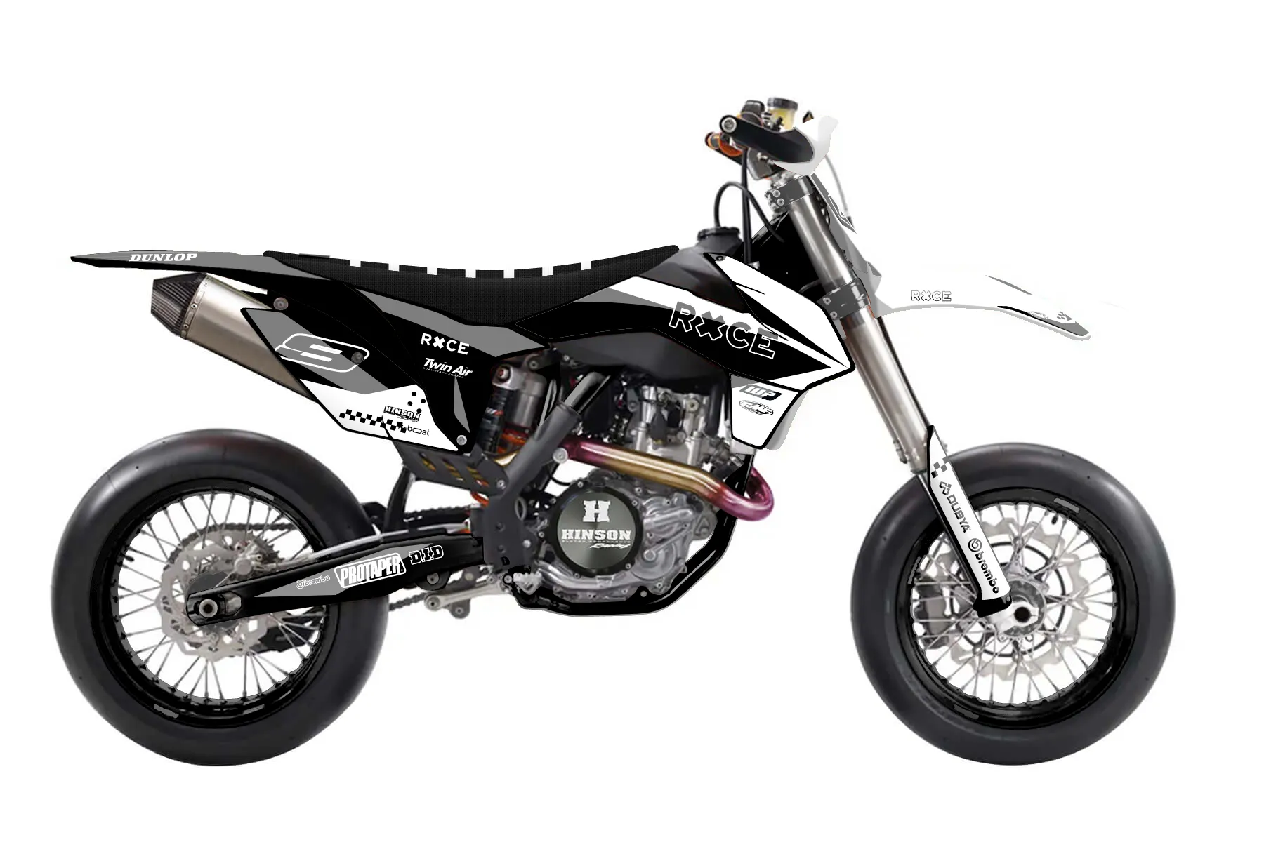 «Rough» — готовый комплект графики серии Staple для KTM Supermoto KTM SMR 450 2013. В комплекте: графика на бак и боковые облицовки, крылья (переднее и заднее), передний щиток, номерные таблички, защита вилки. Материал: ПВХ-винил 80 мкр с холодной ламинацией 300 мкр, общая толщина 380 мкр; покрытие глянцевое или матовое на выбор. Устойчив к UV-излучению, воде, бензину и мойке высокого давления. Клей акриловый на сольвентной основе — постоянный, для гибких пластиков. На простых поверхностях монтируется без нагрева; для сложных изгибов рекомендуем фен. Этот пресет можно заказать как есть или взять за основу в конструкторе: поменять цвета, добавить стартовый номер и свой бренд. Производство — 3–5 рабочих дней, доставка по России СДЭКом или Почтой, по СНГ — курьерскими службами.